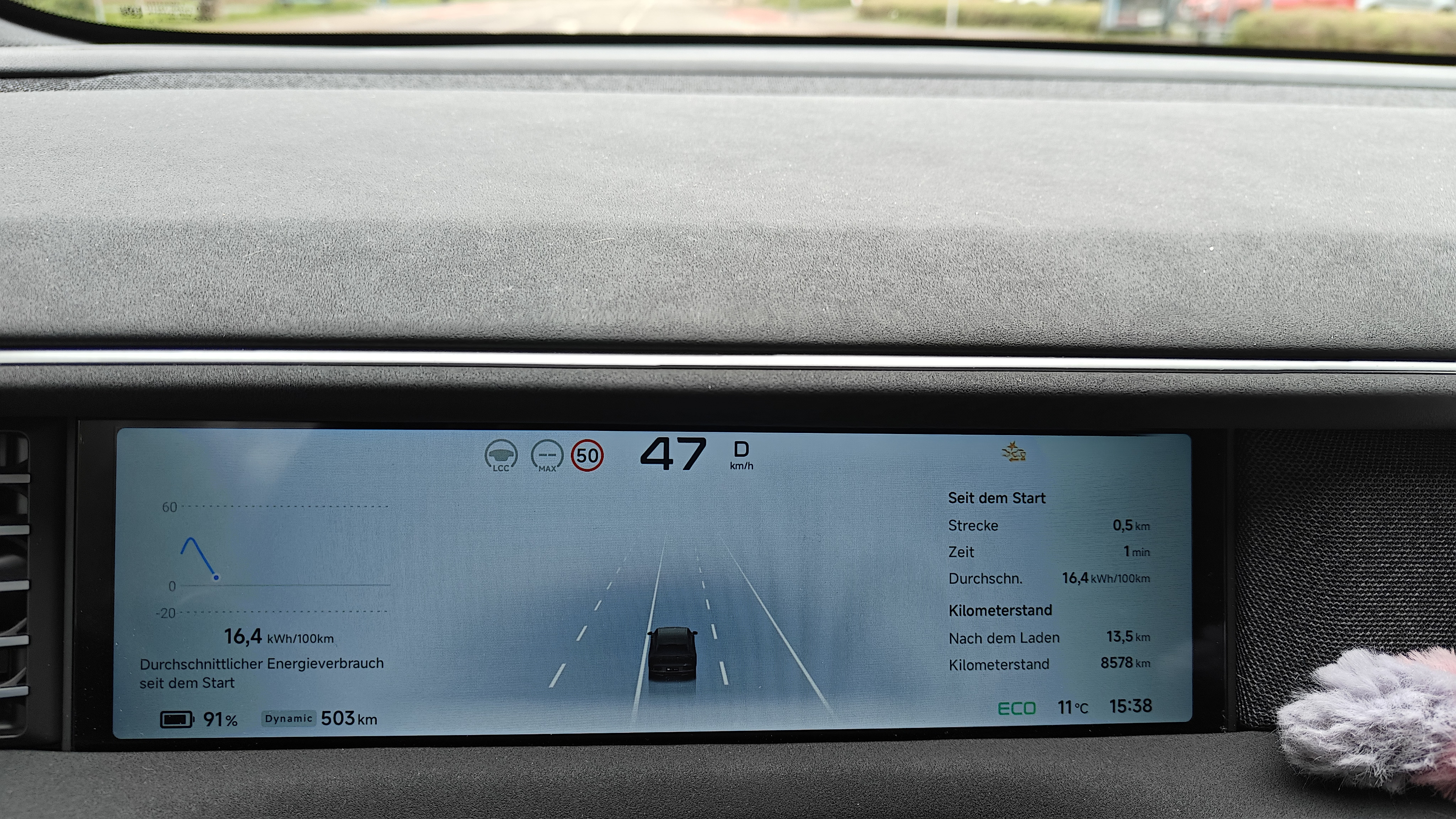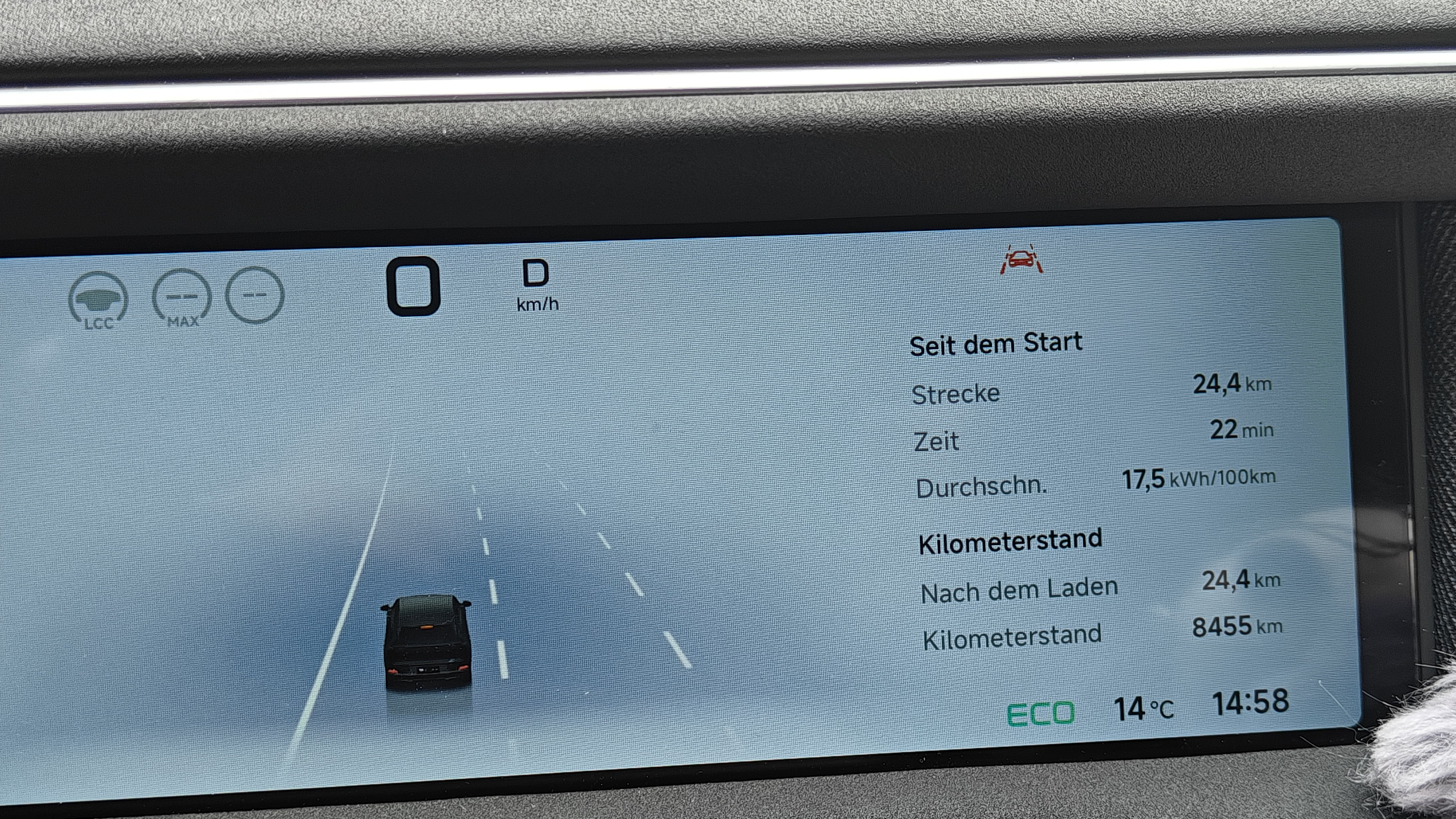 Was er jetzt nicht mehr angezeigt hat das war die Kollisionswarnung, dafür aber direkt der Spurhalte-Assistent