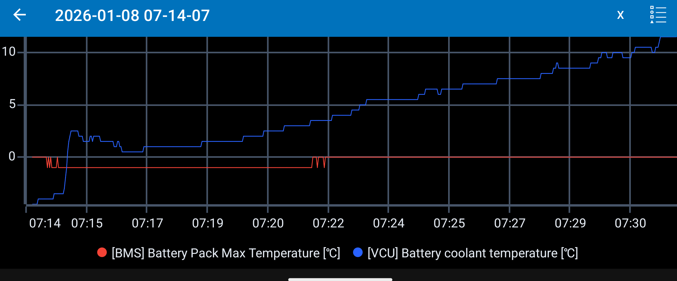 Heute morgen wurde die Batteriekühlflüssigkeit geheizt. Konditionierung war aber nicht an.