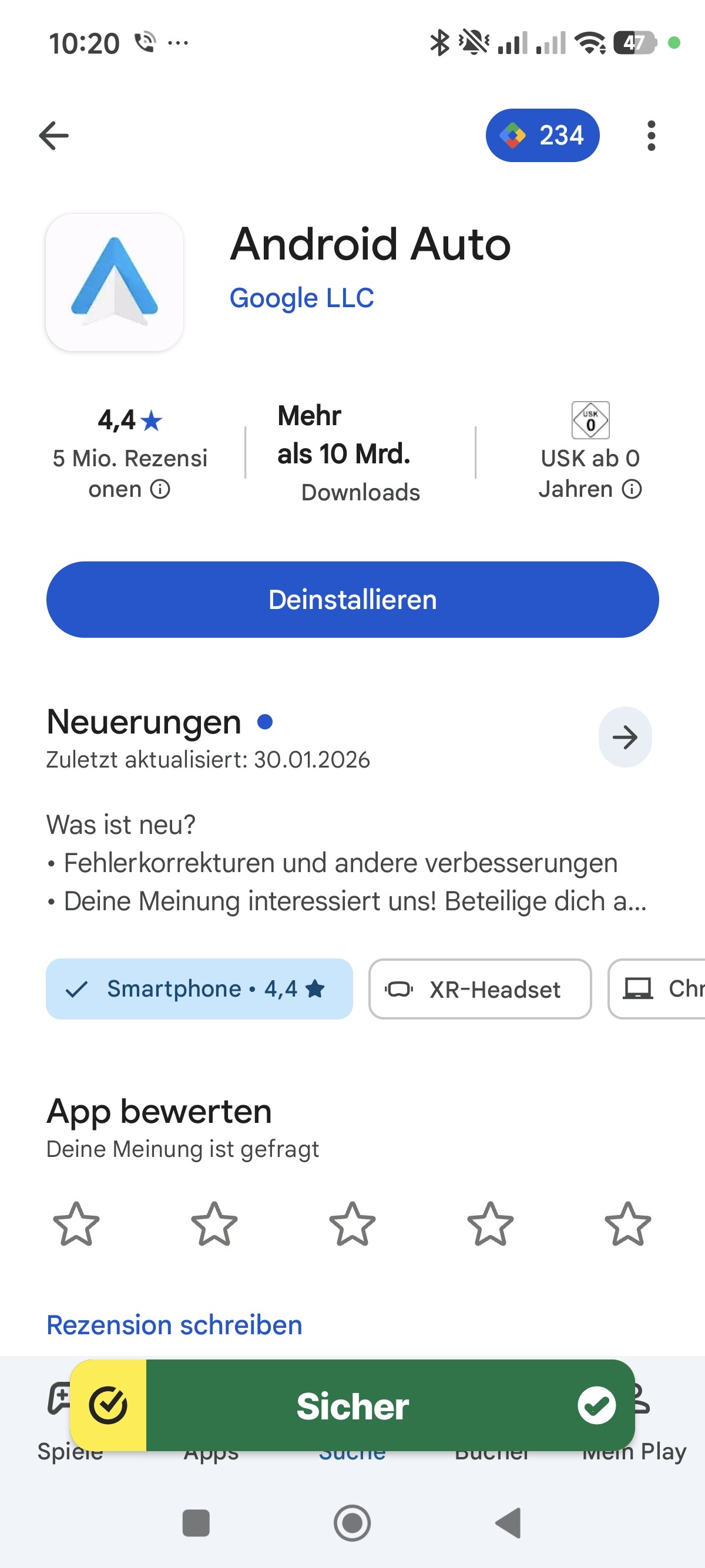Gehe in den Playstore, suche nach „Android Auto“ und deinstalliere.