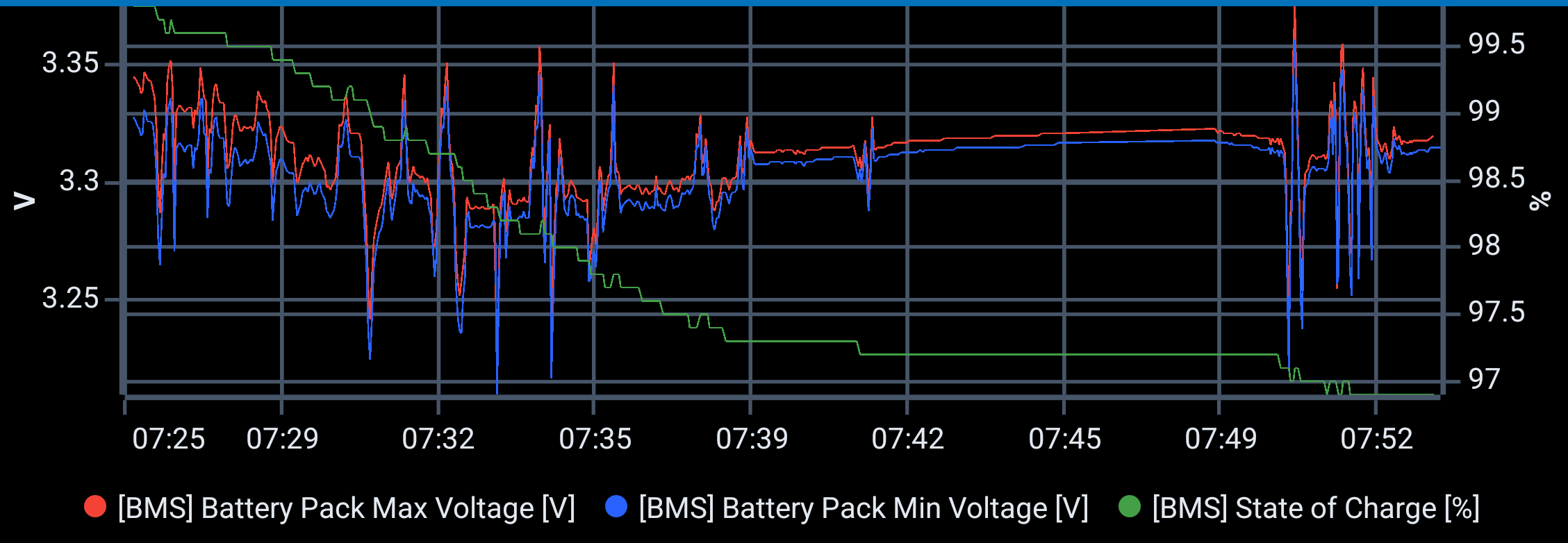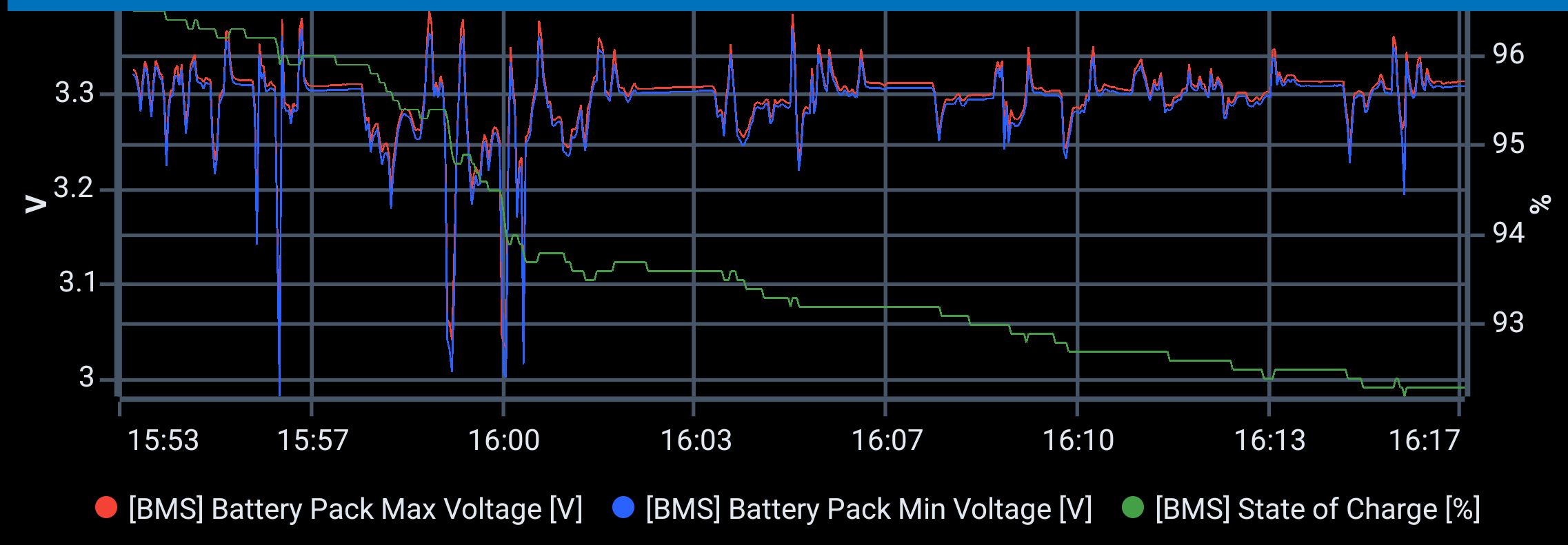 Hintergrund der 100% : die Zellspannungen fallen kaum ab und sind über einen Weiten SOC konstant, somit kann der SOC über die Spannung nicht ermittelt werden, der SOC wird errechnet/ keine Ahnung ob im Fahrzeug ein shunt zum einsatz kommt.