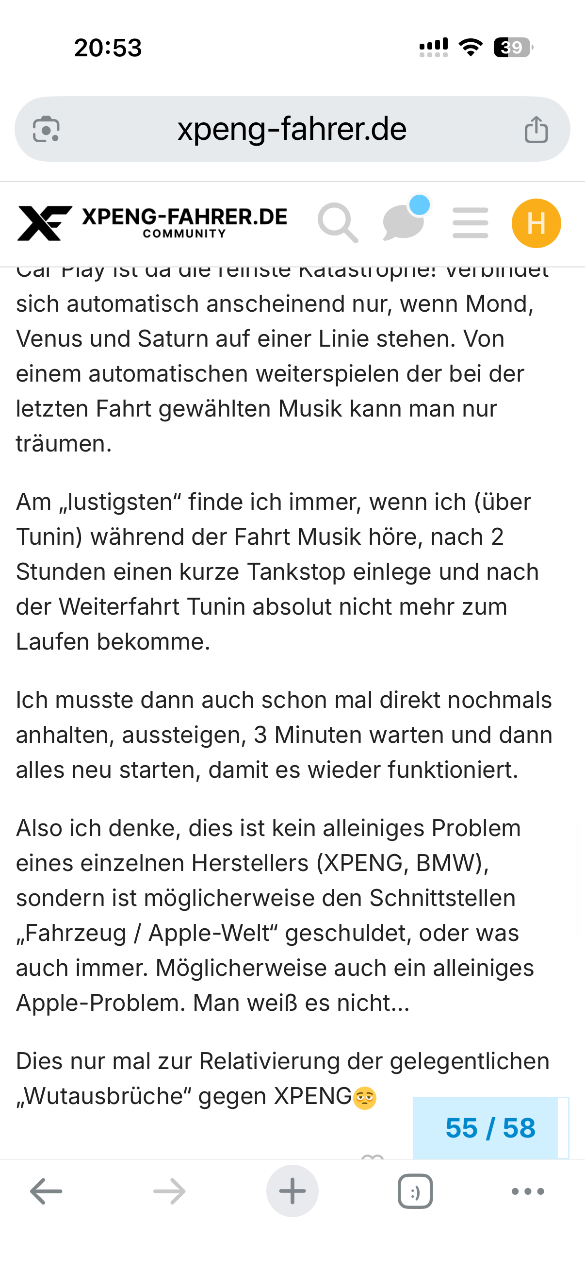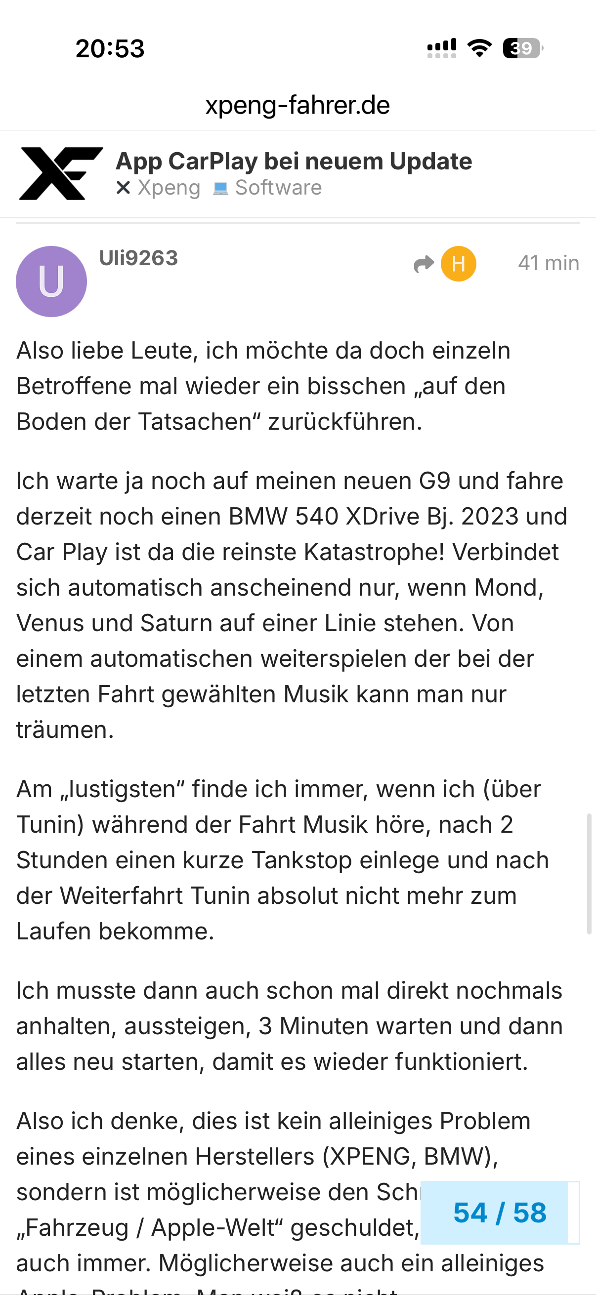 Also ich denke, dies ist kein alleiniges Problem eines einzelnen Herstellers (XPENG, BMW), sondern ist möglicherweise den Schnittstellen „Fahrzeug / Apple-Welt“ geschuldet, oder was auch immer. Möglicherweise auch ein alleiniges Apple-Problem. Man weiß es nicht…