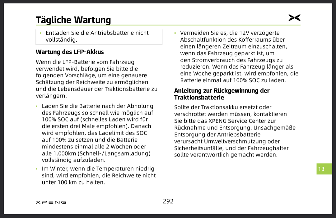 Xpeng meint wohl, alle 2 Wochen oder alle 1000 km auf 100 %