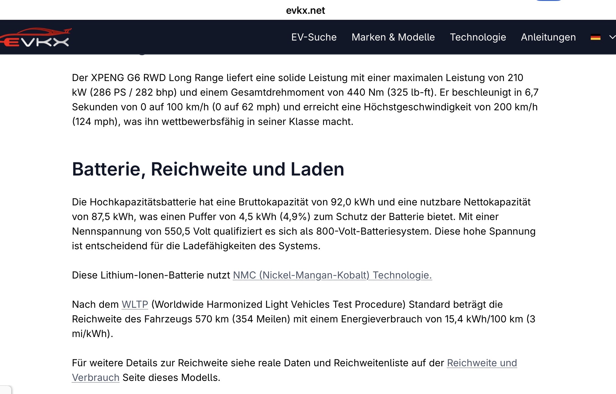 Angaben von der Xpeng Homepage, findet man noch, wenn man nach G6 2024 googelt
