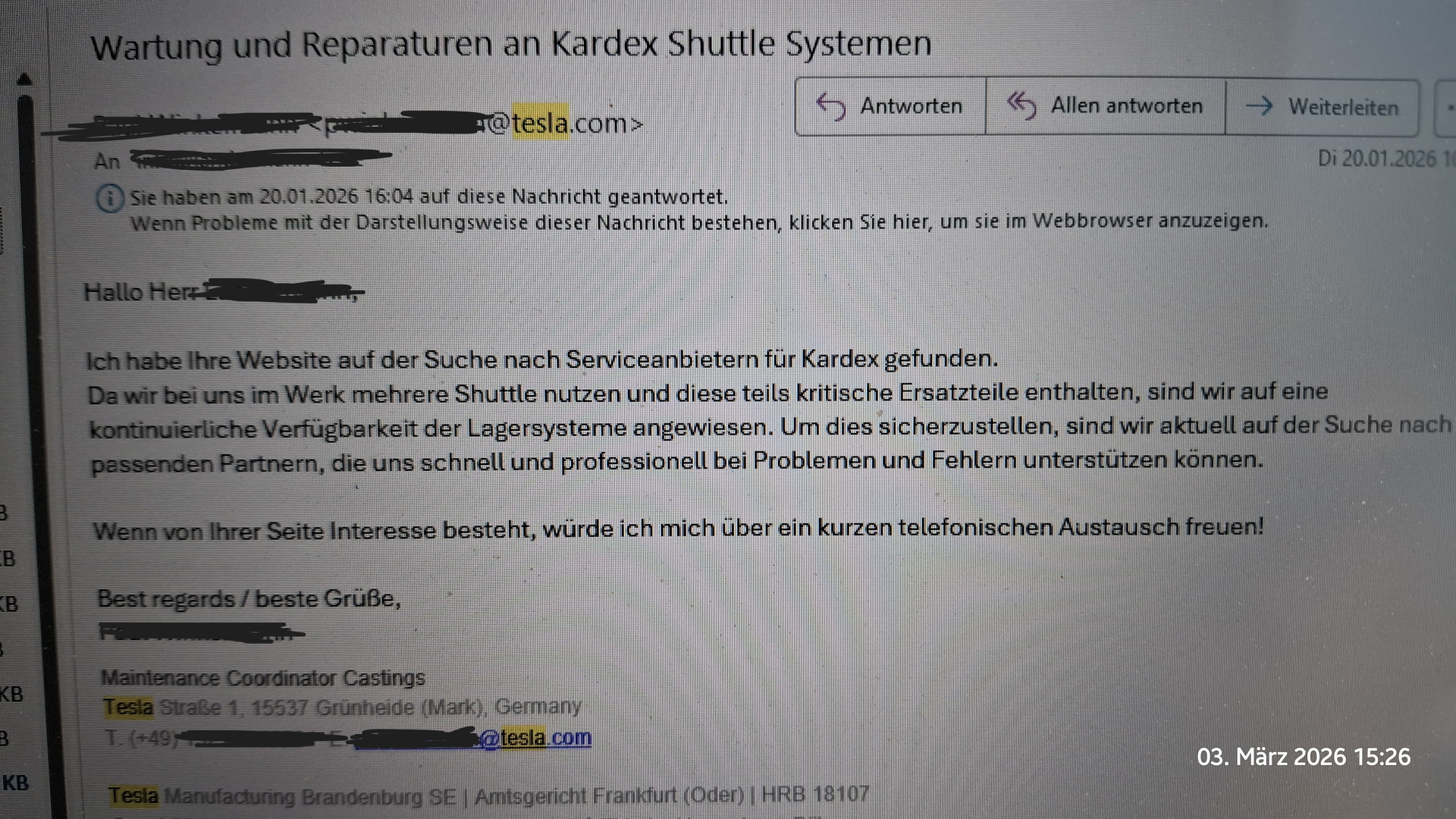Das mag sein, aber ich kann dir nur sagen, ich war bereits für das Tesla-Center in Holzwickede geschäftlich tätig und wir mussten nach mehreren Mahnungen nach 3 Monaten Inkasso einschalten…. und selbst die Creditreform brauchte 3 Monate zur Eintreibung unserer Forderung. Ich kann das so schreiben, weil ich das auch beweisen kann! Das ist ganz klar MEIN Grund, warum bei uns niemals ein Tesla auf den Hof kommt!