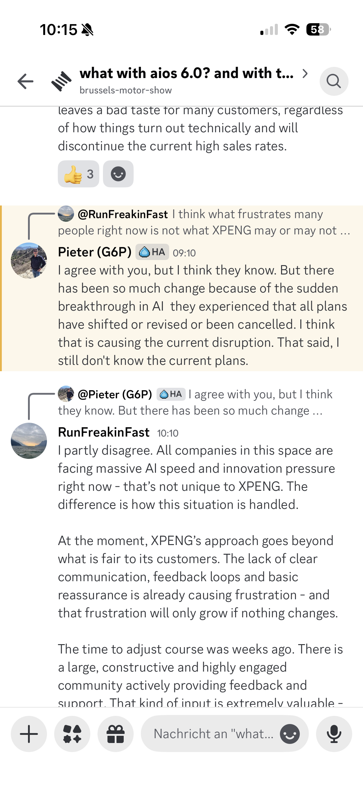 Es wurden monatelang von der Community Fehler gesammelt und mit viel Arbeit fein säuberlich zusammengestellt und übergeben. Ich hätte hierzu ein konkretes Feedback von XPeng erwartet. Das hat was mit Wertschätzung zu tun.