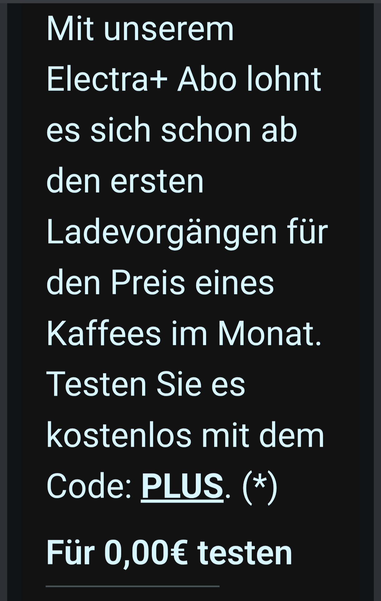 Das ist auf jeden fall ne Ansage. Sogar ohne ABO ist das Laden vie App noch „OK“ wenn man bedenkt wo man alles für den Preis laden kann dann.