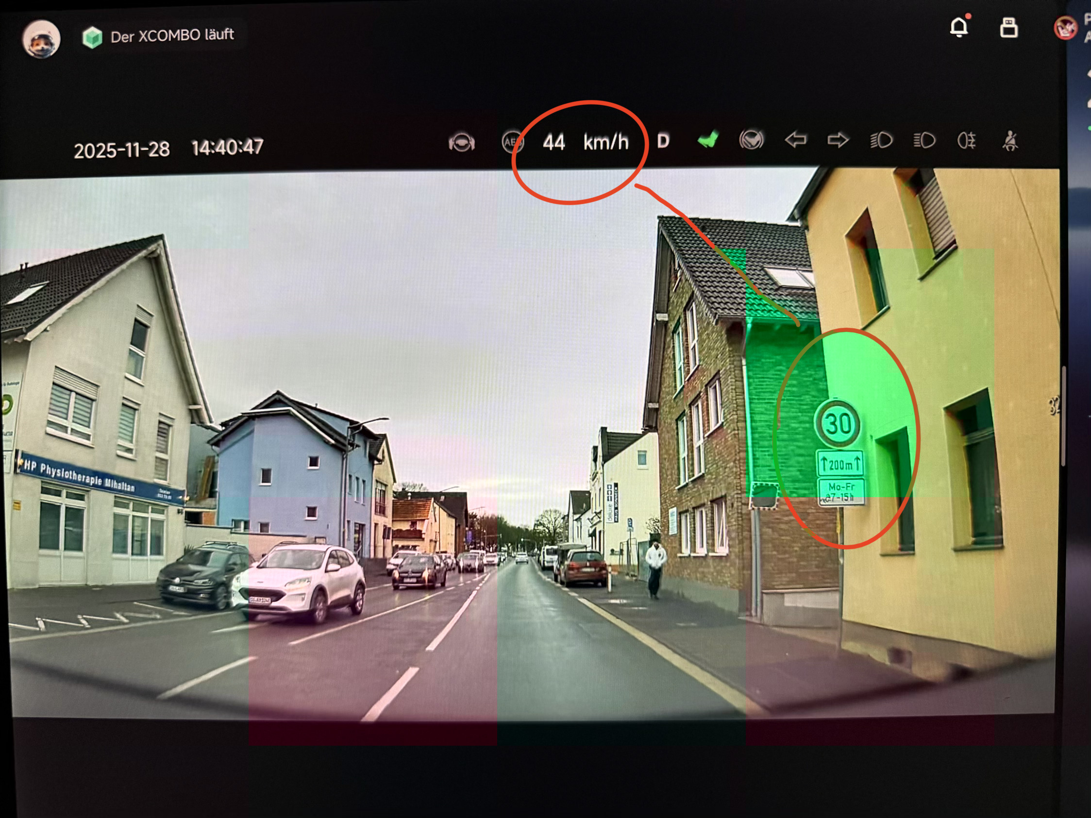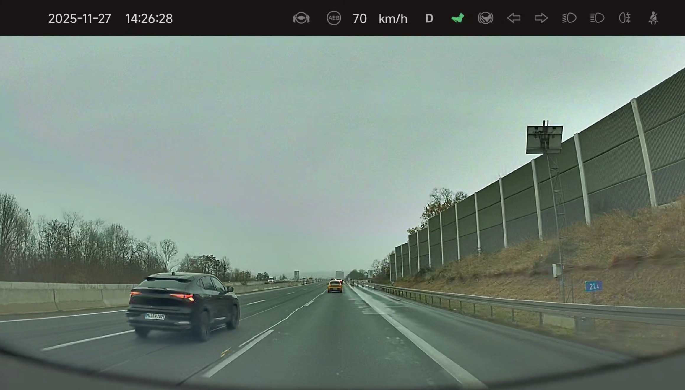 Video 1 (Frontansicht & Telemetrie): Dieses Video stammt von der Kamera in der Windschutzscheibe. Das Besondere ist, dass hier eine Art „Event Data Recorder“ integriert ist. Man sieht im Overlay also direkt die Fahrdaten: Gibst du Gas? Bremst du? Ist der Blinker gesetzt?