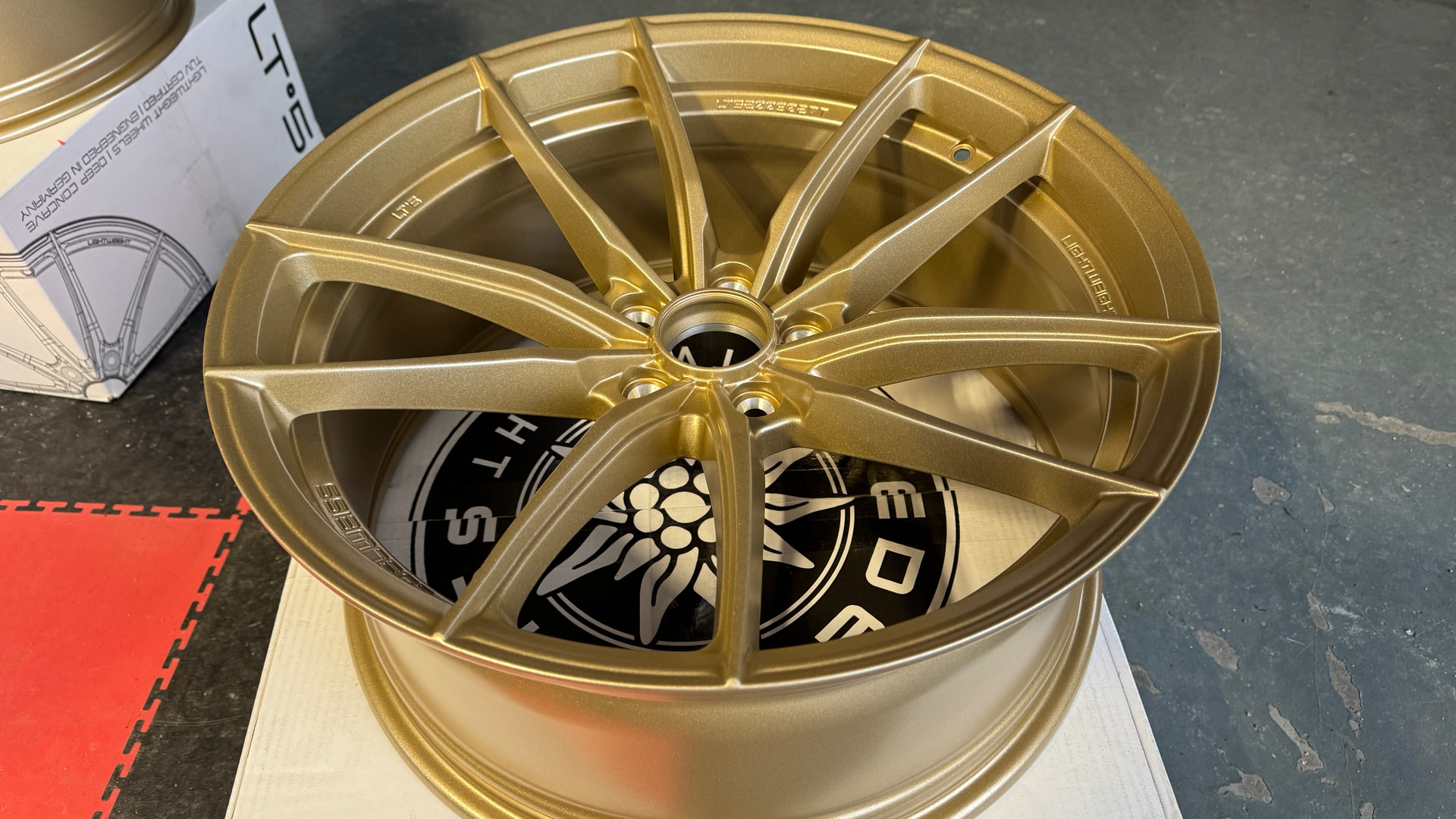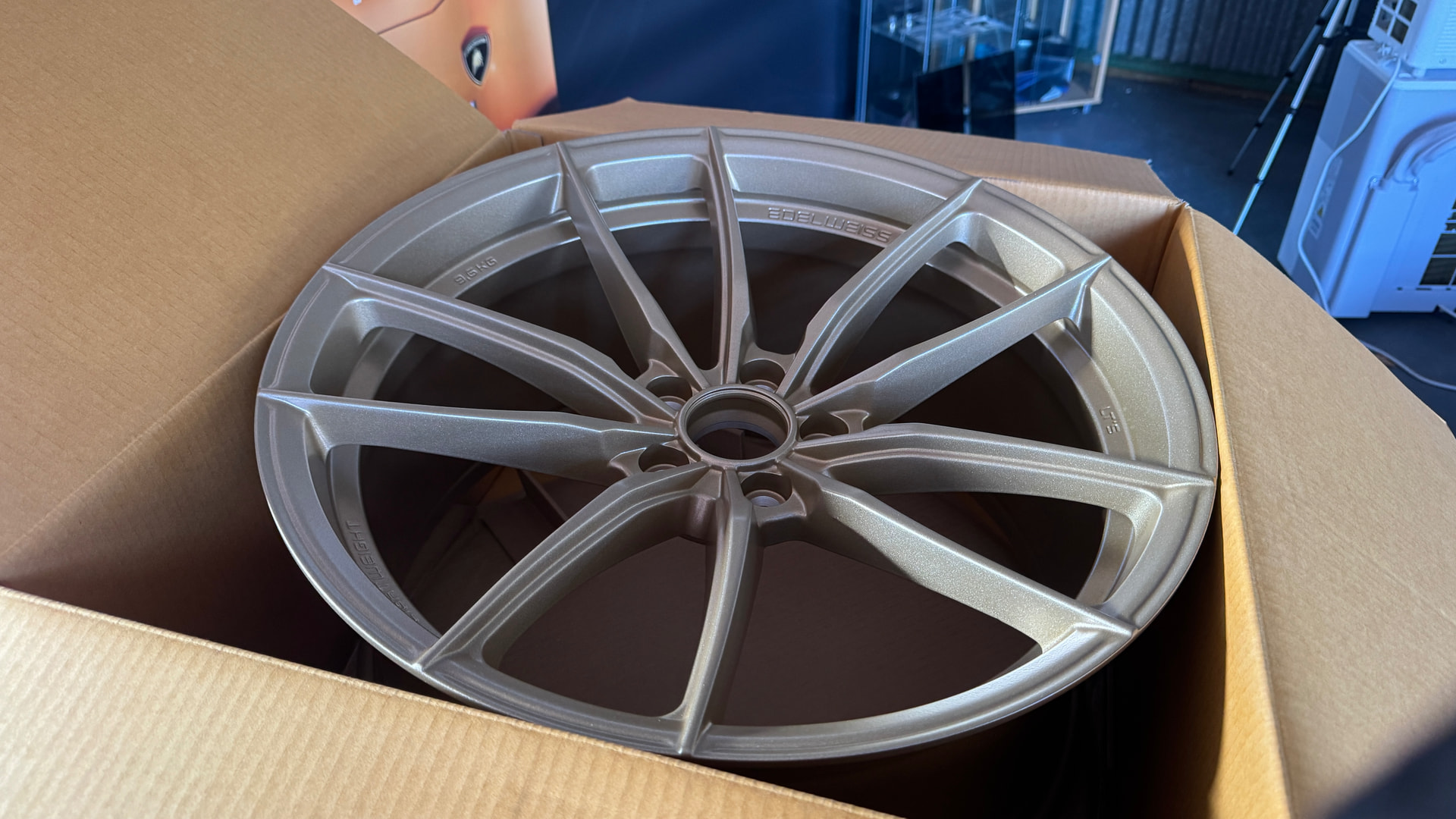 Die vom Kunden original verpackt angelieferten Edelweiss Felgen wurden keramisch versiegelt. Der Vorteil hierbei ist dass die Felgen geschützt werden vor aggressiven Bremsstaub, vor Teerabrieb usw. Ausserdem lassen sie sich sehr leicht, ohne scharfe Chemie, reinigen