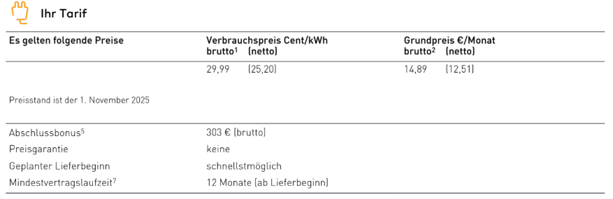 EnBW ist preislich absolut in Ordnung, GG ist 14,89 € ist in meiner Region normal, kWh bei 29,99 Cent (12 Monate) ist auch i.O.