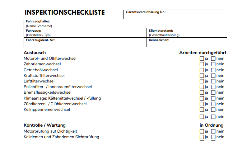 Hiermit bestätigen wir Ihnen, die Inspektion nach Hersteller Vorgaben durchgeführt zu haben