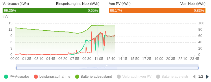 25 kWp PV. Im Sommer, wenn der Strompreis bei Tibber günstig ist, brauch ich keinen Strom.
