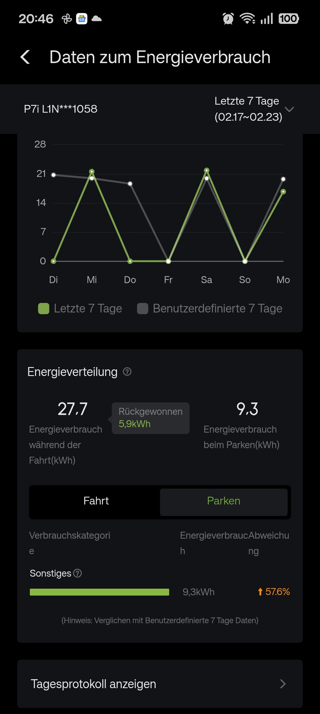 Also seit dem ich das Widget aufm Handy gelöscht habe und immer die app komplett schließe, habe ich tatsächlich mehrere Tage 0kw/h zum laden der Bordbatterie. Vorher waren es auch oft zwischen 0,1 - 0,7 kw/h am Tag.