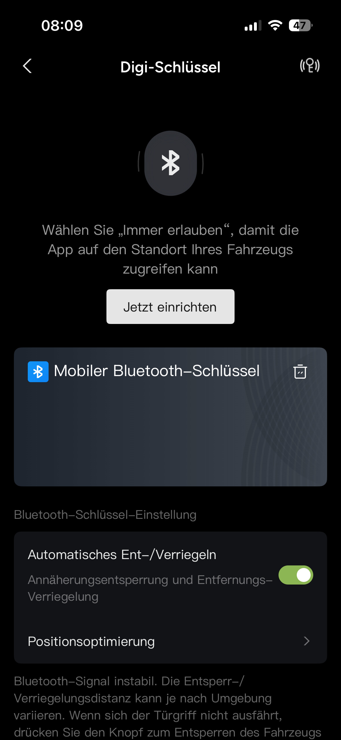 Und für den Notfall haben ja alle Keyless-Go-Fahrzeuge eine NFC-Stelle, wo man den Schlüssel dran halten kann, was auch dann geht, wenn die Batterie des Schlüssels leer ist.