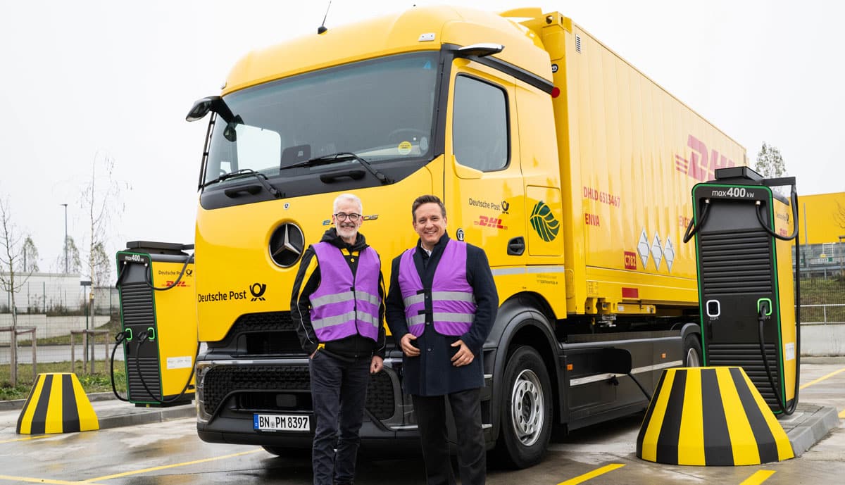 Die DHL startet den Aufbau eigener LkW-Ladeparks. Der erste startete jetzt im Paketzentrum Aschheim bei München. Bis 2027 sollen es bundesweit 170 Lademöglichkeiten geben. Jede Ladesäule von Alpitronic bieten eine Ladeleistung von 400 kW.