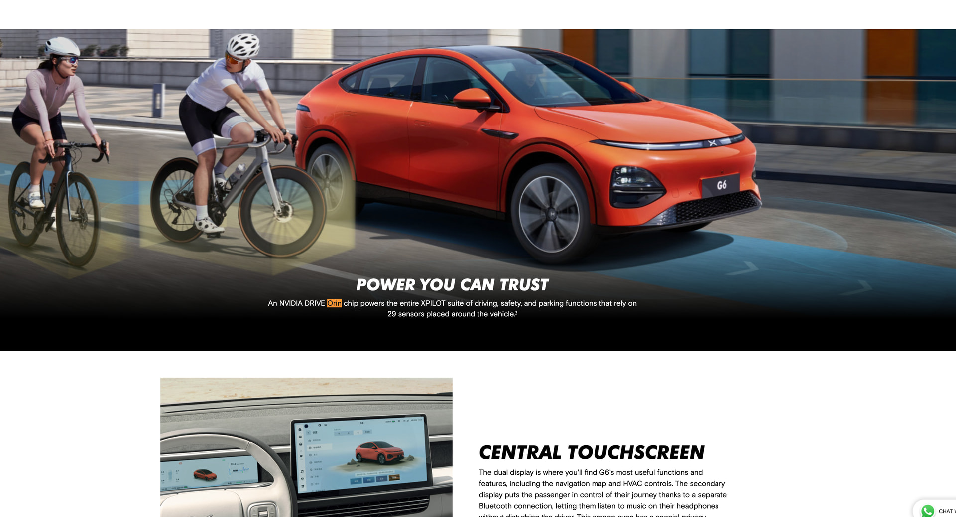 “The G6 has 31 smart sensors, including two LiDARs, and a total computing power of up to 508 TOPS from the dual NVIDIA DRIVE Orin-X chips. These advanced features will allow the vehicle to visualize panoramic road conditions in real time and handle multiple driving scenarios from starting the car through parking at a destination, regardless of the high-definition (HD) map coverage availability. With XNGP, XPENG has achieved the ultimate form of ADAS before fully autonomous driving is realized.“