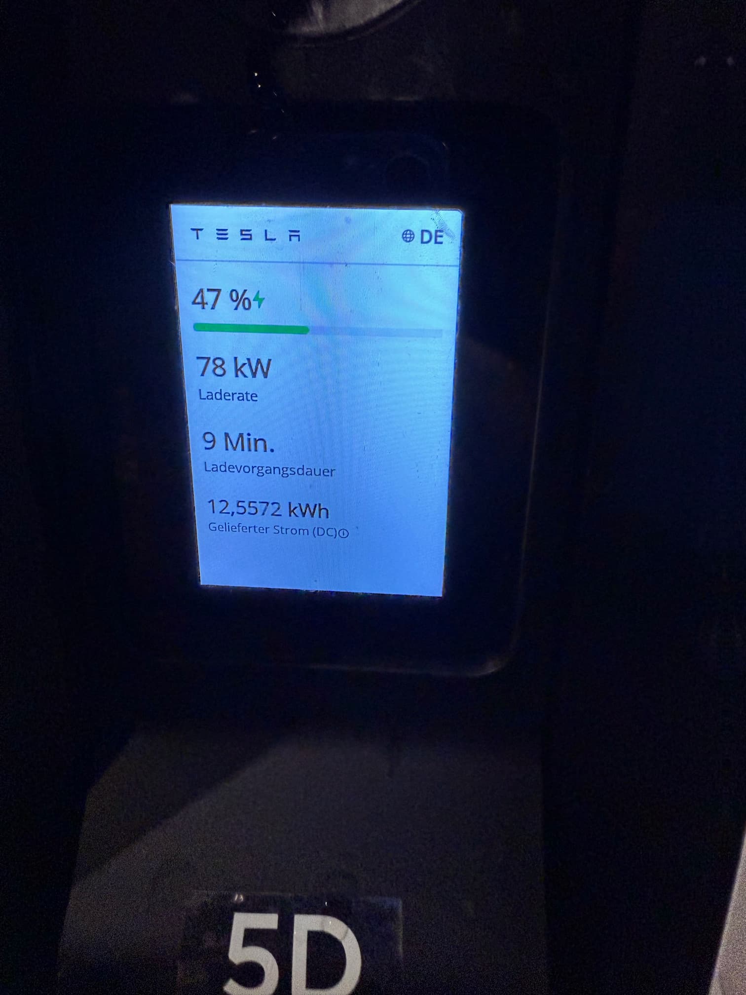 Leider musste ich feststellen, dass die Tesla-Säule teilweise nur mit sehr geringer Geschwindigkeit lädt. Zuerst dachte ich, es liegt an genau dieser Säule, aber nachdem ich eine andere ausprobiert habe, funktionierte es ebenfalls nicht richtig. Der Ladevorgang startet kurz, läuft etwa fünf Sekunden und bricht dann wieder ab. Ich habe es bestimmt zehnmal versucht, immer mit demselben Ergebnis.