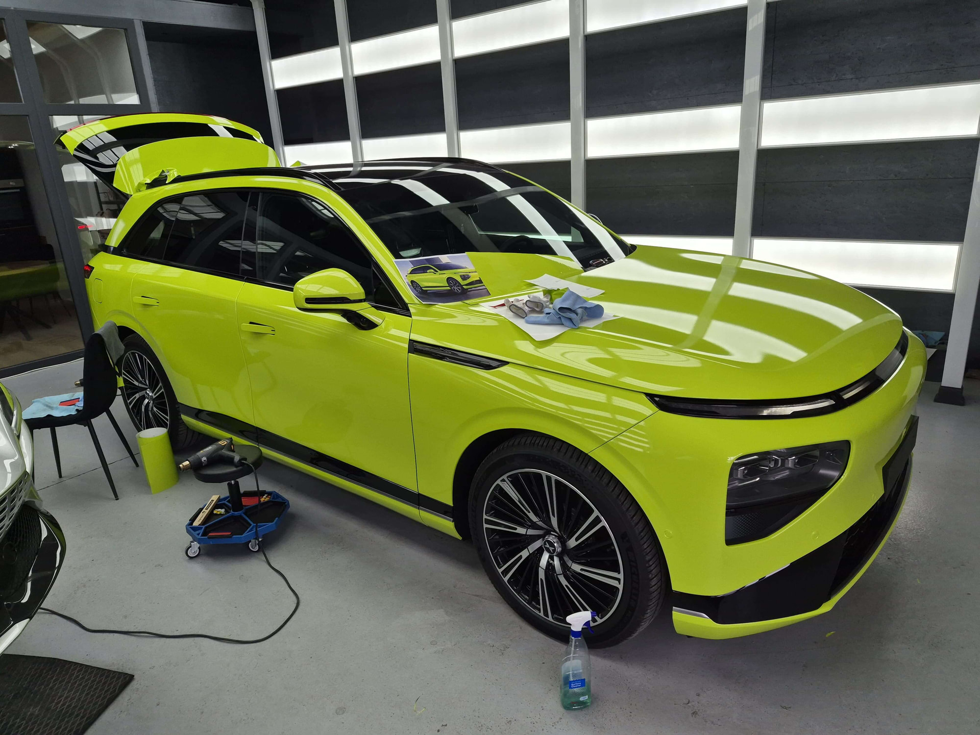 Unter der Woche bleibt irgendwie nie Zeit für die eigenen Projekte, also habe ich meinen G9 am Wochenende foliert und gleich die Wunschfarbe meiner Frau umgesetzt. Sie wollte eigentlich einen Skoda Enyaq RS in Mamba-Grün, ich wollte den G9. Jetzt haben wir einfach beide Welten kombiniert und sind beide happy