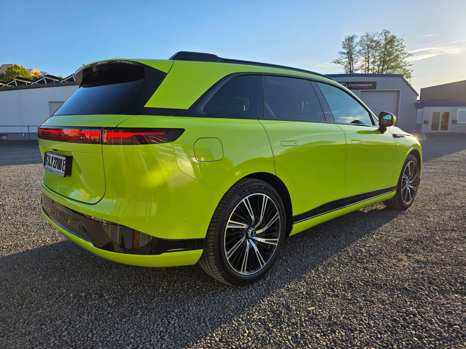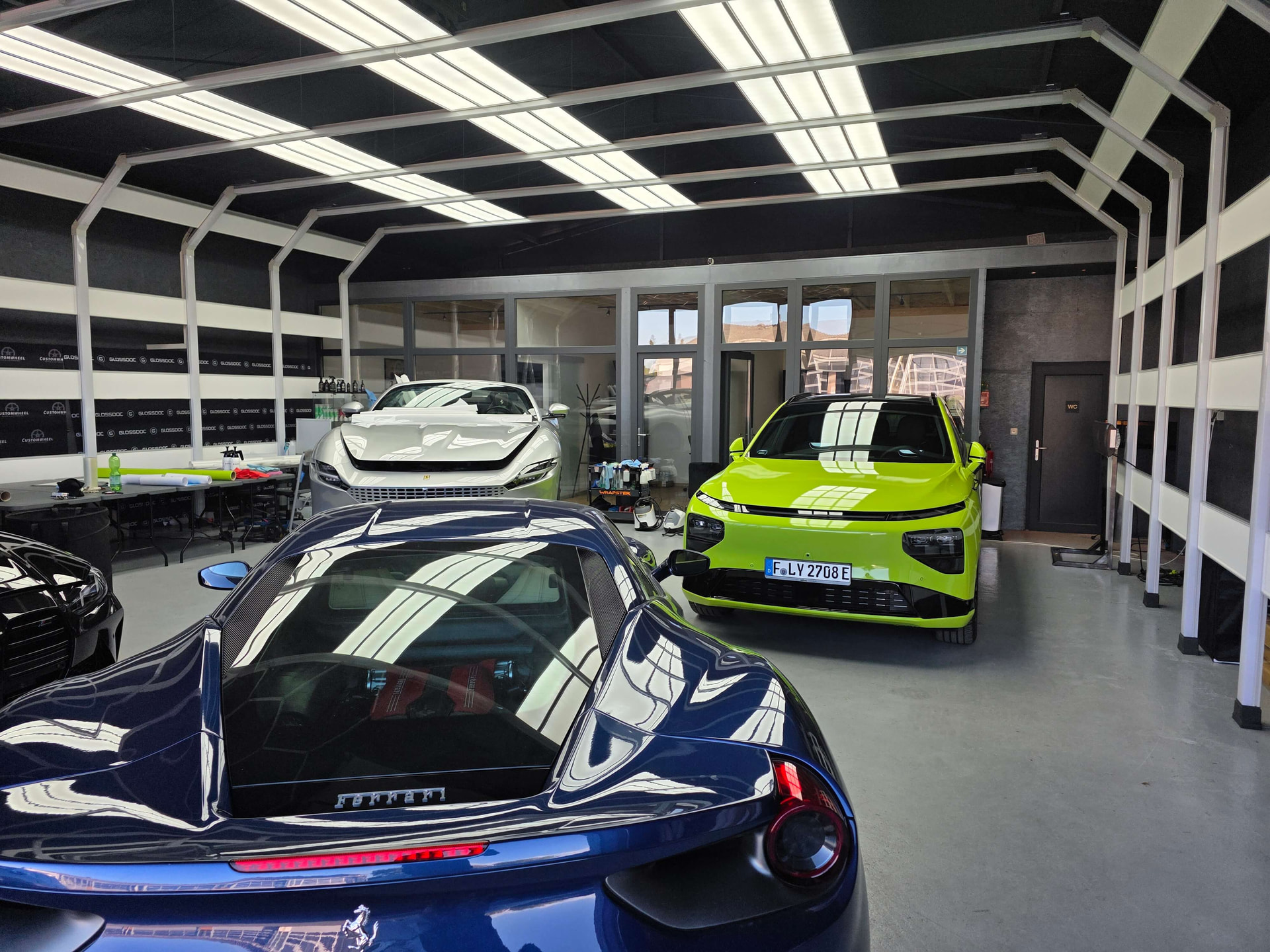 Als Nächstes brauche ich noch das originale Front-Logo und die Schriftzüge für die Heckklappe, alles in Schwarz. Mal schauen, wie lange Xpeng fürs Liefern braucht. Parallel will ich mir schwarze Alufelgen holen und dann geht’s an den Heckausbau für die Hunde. Das mache ich bei Kleinmetall. Ich bin schon mit denen in Kontakt, aber die sind leider nicht ganz so schnell wie ich Am Ende wird das aber schon so, wie ich’s mir vorstelle. Die Leute bei Kleinmetall machen echt einen guten Job, ich habe dort auch schon mal eine R‑Klasse umbauen lassen. War zwar etwas teurer, dafür aber eine perfekte Lösung.