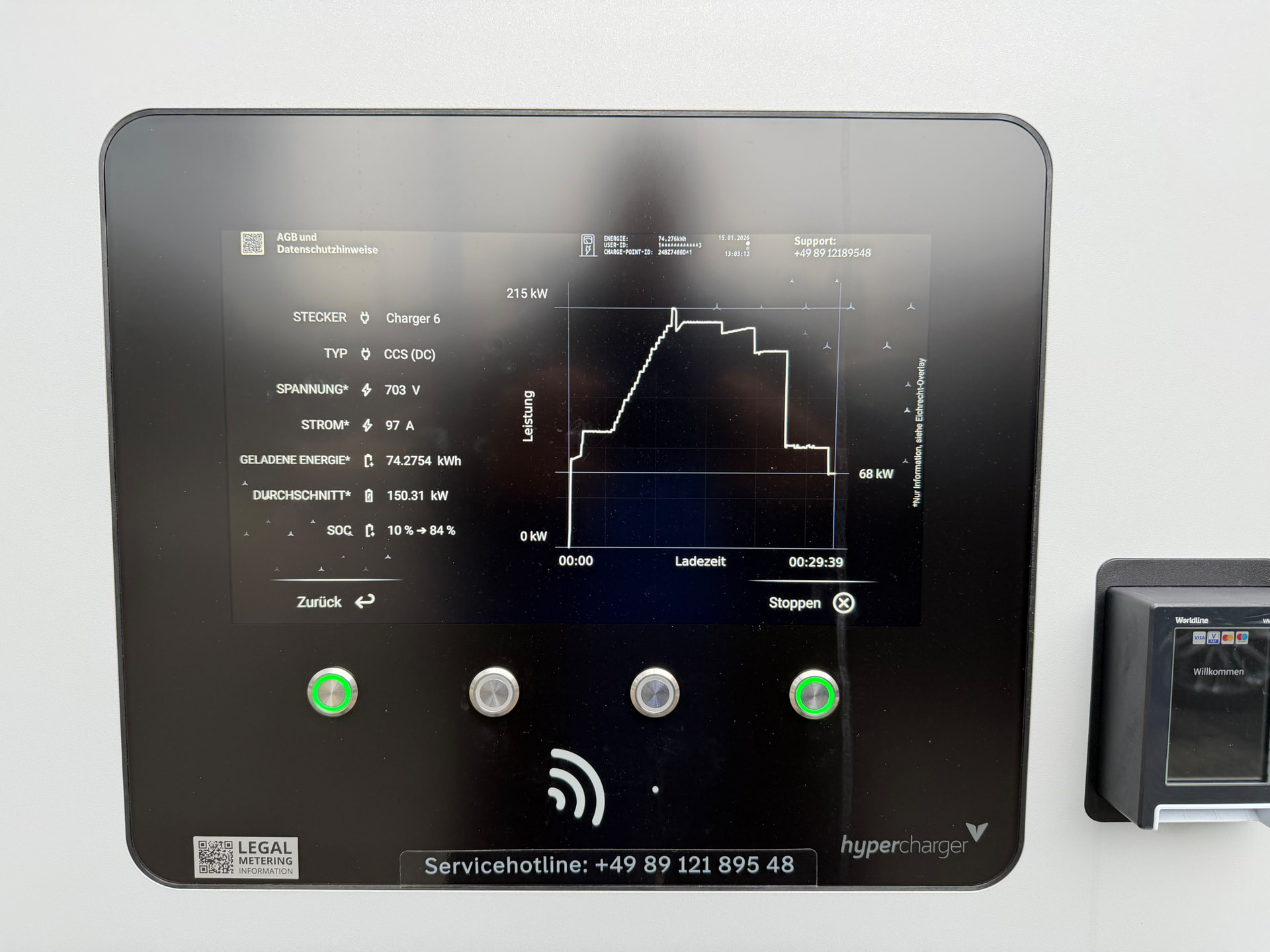Leider hat er nicht ganz so geglänzt beim Laden, oder die 400 kW Säulen konnten nur zweimal 200? Der #5 hat mir auch gut gefallen.