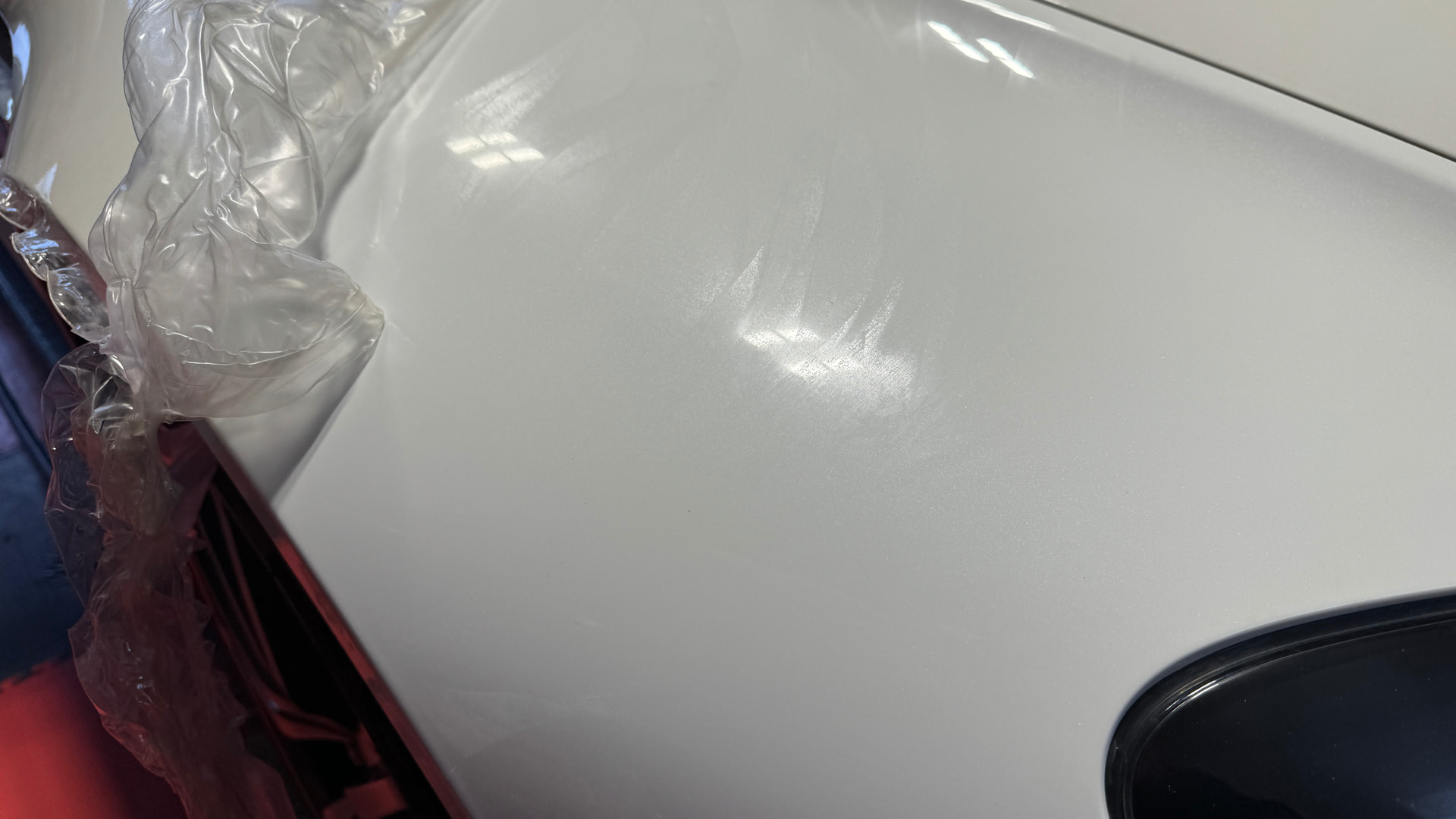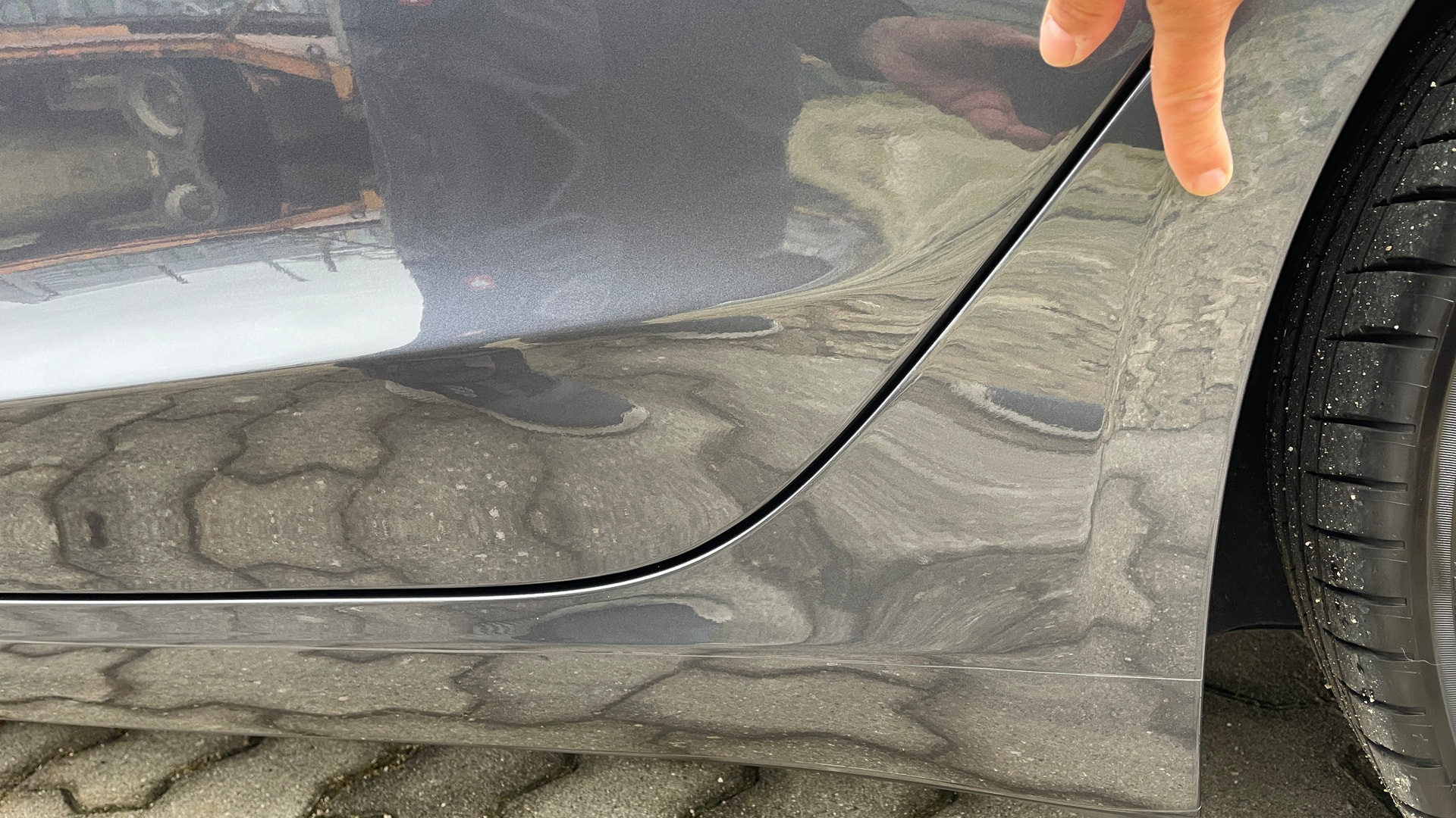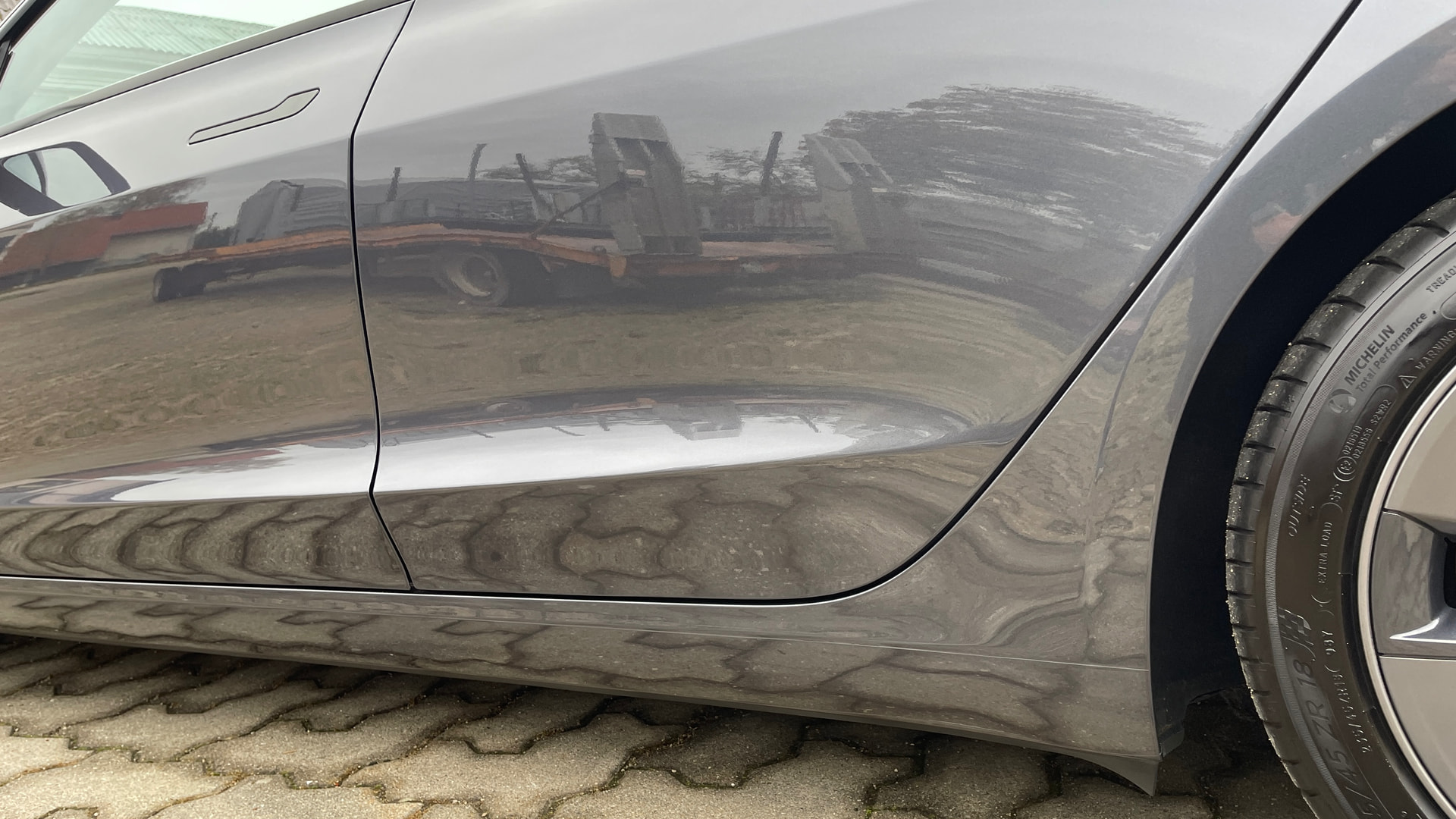 Klar erkennt man die Kante. Aber abgesehen von der Kante sieht man nicht ob ein Lackbereich foliert ist oder nicht. Genauso hier am Kotflügel bzw. Übergang zwischen Schweller und Kotflügel