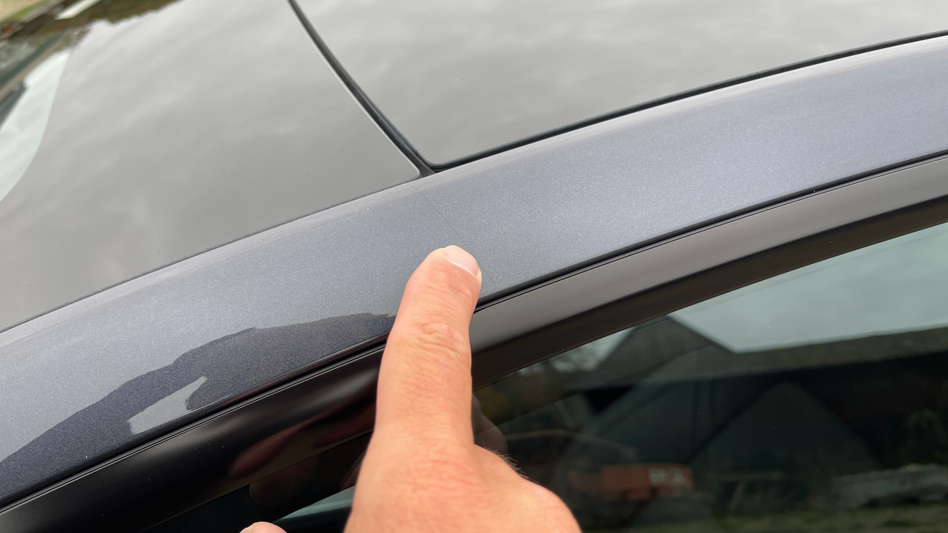 Ich zeige Euch hier mit meinem Finger bei Tageslicht den Übergang an der A-Säule zwischen Folie und nicht foliertem Bereich