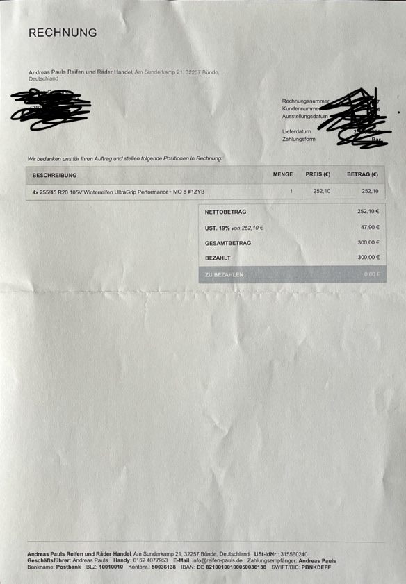 Ganz ehrlich: Winterreifen sollte man kaufen, wenn keiner kauft: Im Sommer. Wenn dich der Preis auf der nachfolgenden Rechnung überzeugt, dann ruf doch einfach mal den Händler an. Der Reifen ist übrigens von Dunlop. Ich kaufe nur da, weil es einfach schön ist, nur die Hälfte zu zahlen ![]()
