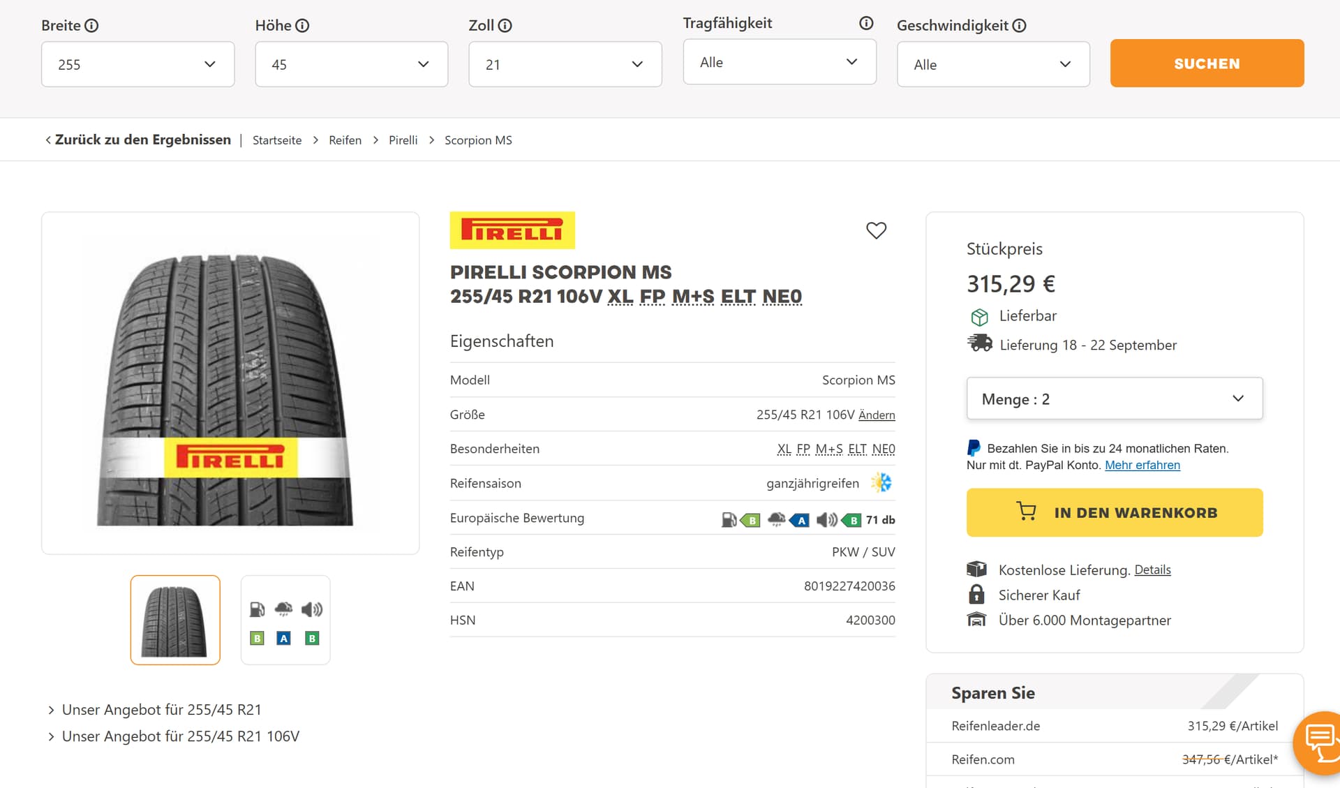 Das Fahrzeug wird überwiegend in Hamburg gefahren. Bei meinem Golf 8 bin ich mit Ganzjahresreifen sehr gut zurechtgekommen, aber bei einem Elektro-SUV ist das wiederum etwas anderes und da wollte ich nichts falsch machen.