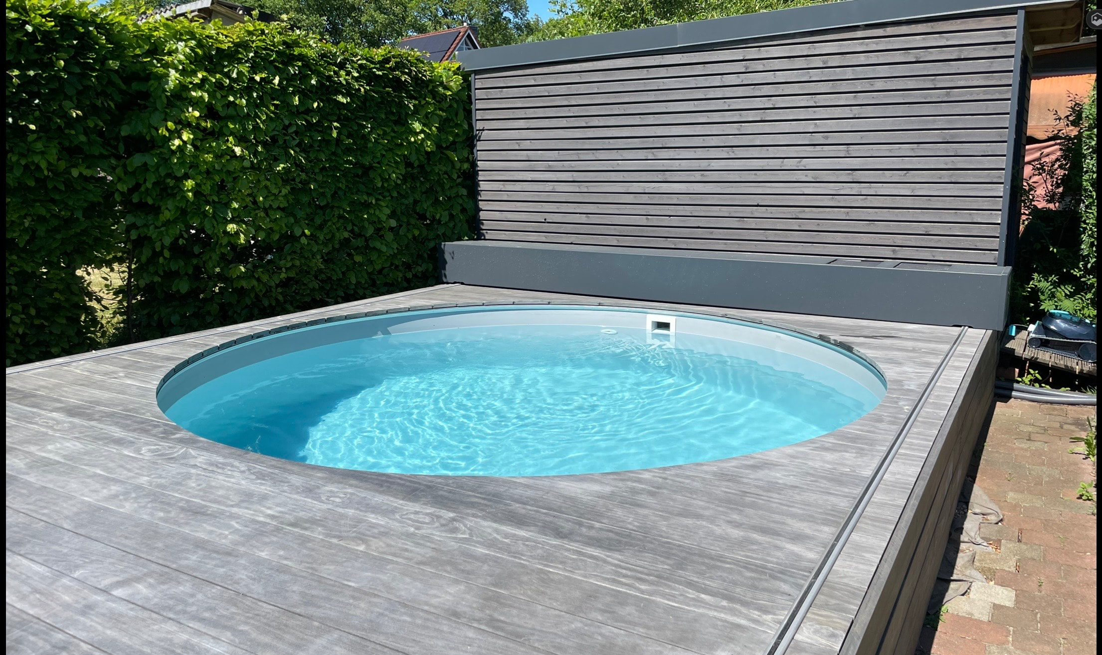 Das Pooldeck zu bauen, war ein geiles Projekt mit meinem Schwiegervater. Runder Ausschnitt. Hat gedauert, aber freue mich jeden Tag drüber. Leiter habe ich verboten. Schön hochziehen aus dem Pool. Besonders die Kids. Gibt Muckis😂
