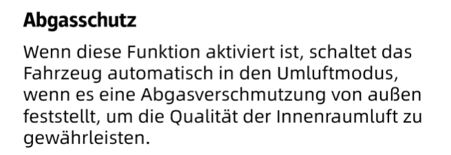 Während der rund 2,5-Stündigen Fahrt habe ich es nicht hinbekommen, dass das Klima angenehm war. Im besonderen waren meine Füße EIS KALT. Eco-Modus der Klimaanlage war zuerst an, dann durch mich ausgeschaltet. Machte keinen Unterschied. Einstellung immer auf “AUTO”.