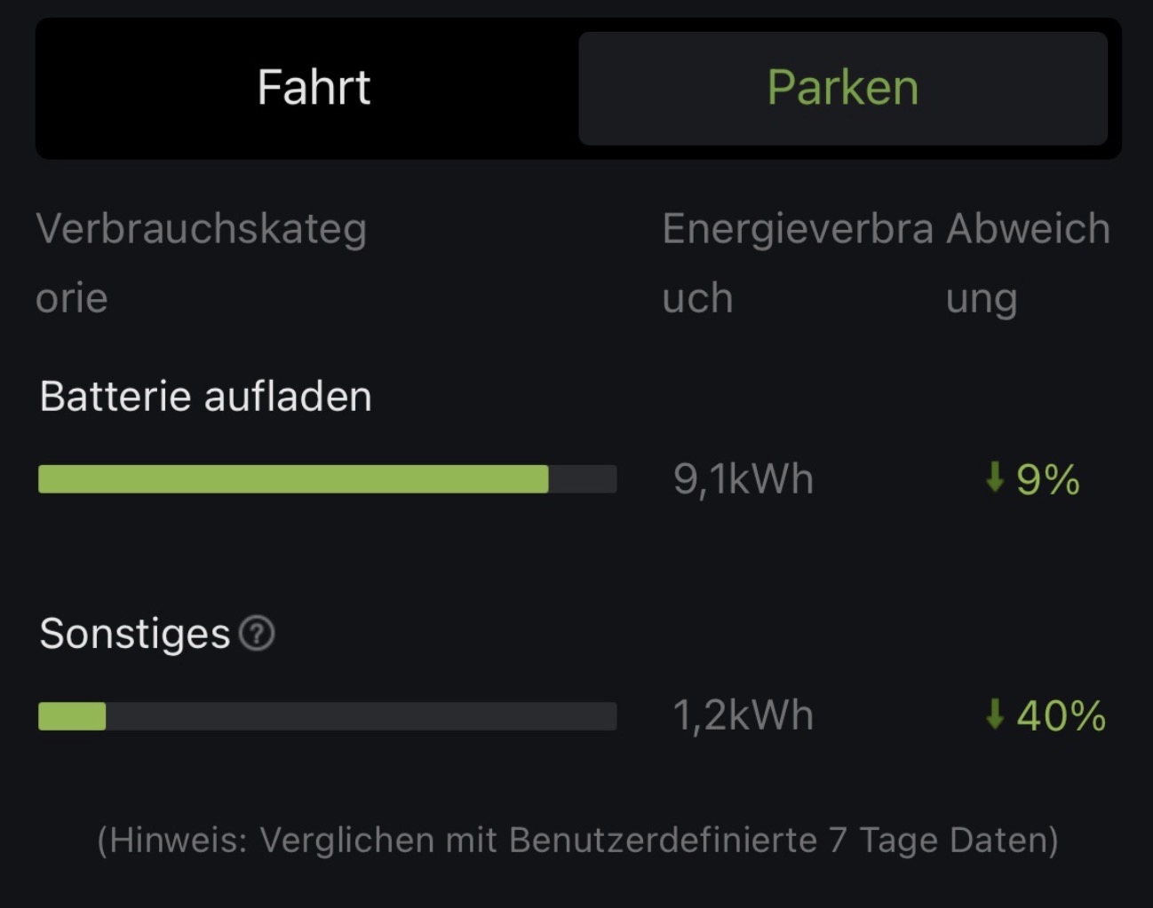 Bis jetzt ja, habe ich nun mal ausgeschaltet und werde beobachten. Wobei ich die Konnektivität von der App zum Fahrzeug eher unter „Sonstiges“ beim Verbrauch einordnen würde. also 1,2 kWh in den 6 Tagen. Aber wieso zieht die 12Volt so viel Strom das die nachgeladen werden muss aus dem Hochvoltakku? Xguard ist natürlich aus. Allerdings habe ich den Digi-Schlüssel aktiviert.