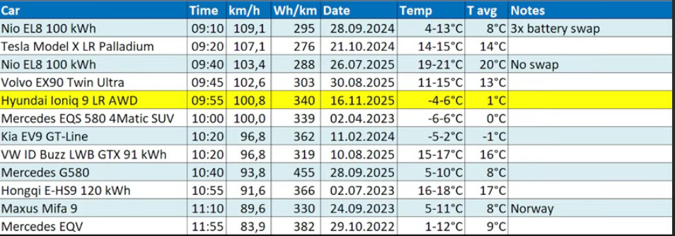 Und man muss auch sehen, dass die Fahrzeuge, die schneller waren, bei bestem Wetter gefahren sind. Also da wäre Top 3 wohl drin gewesen bei 15-20 Grad, denn die E-GMP Plattform benötigt schon etwas mehr Energie bei kalten Temperaturen.