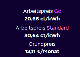 29,99 Cent und 14,90 Grundgebühr. Der Preis für die kWh ist mir relativ egal, ich habe dieses Jahr erst 200 kWh bezogen (wird jetzt sicher noch was dazu kommen).