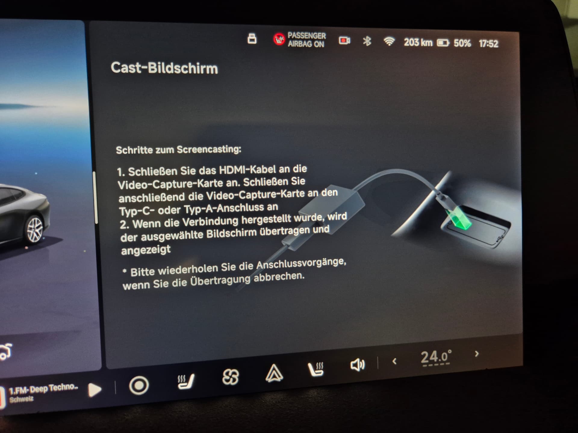 den Stromanschluss erst einstecken, wenn alles andere verbunden. Ich nutze auch den 12 Volt Stromanschluss. So jedenfalls bei mir und dem WaipuTV Ich habe ihn an USB c angeschlossen.