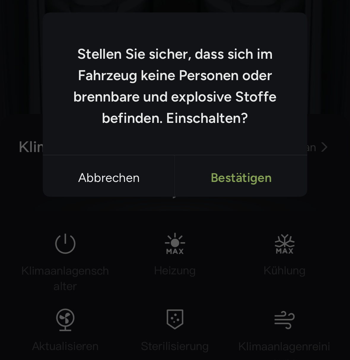 hat hier jmd schon einmal die Klimaanlagenreinigung/-sterilisation durchgeführt? Per App kommt die folgende Warnung, die irritiert mich ja schon ein wenig.