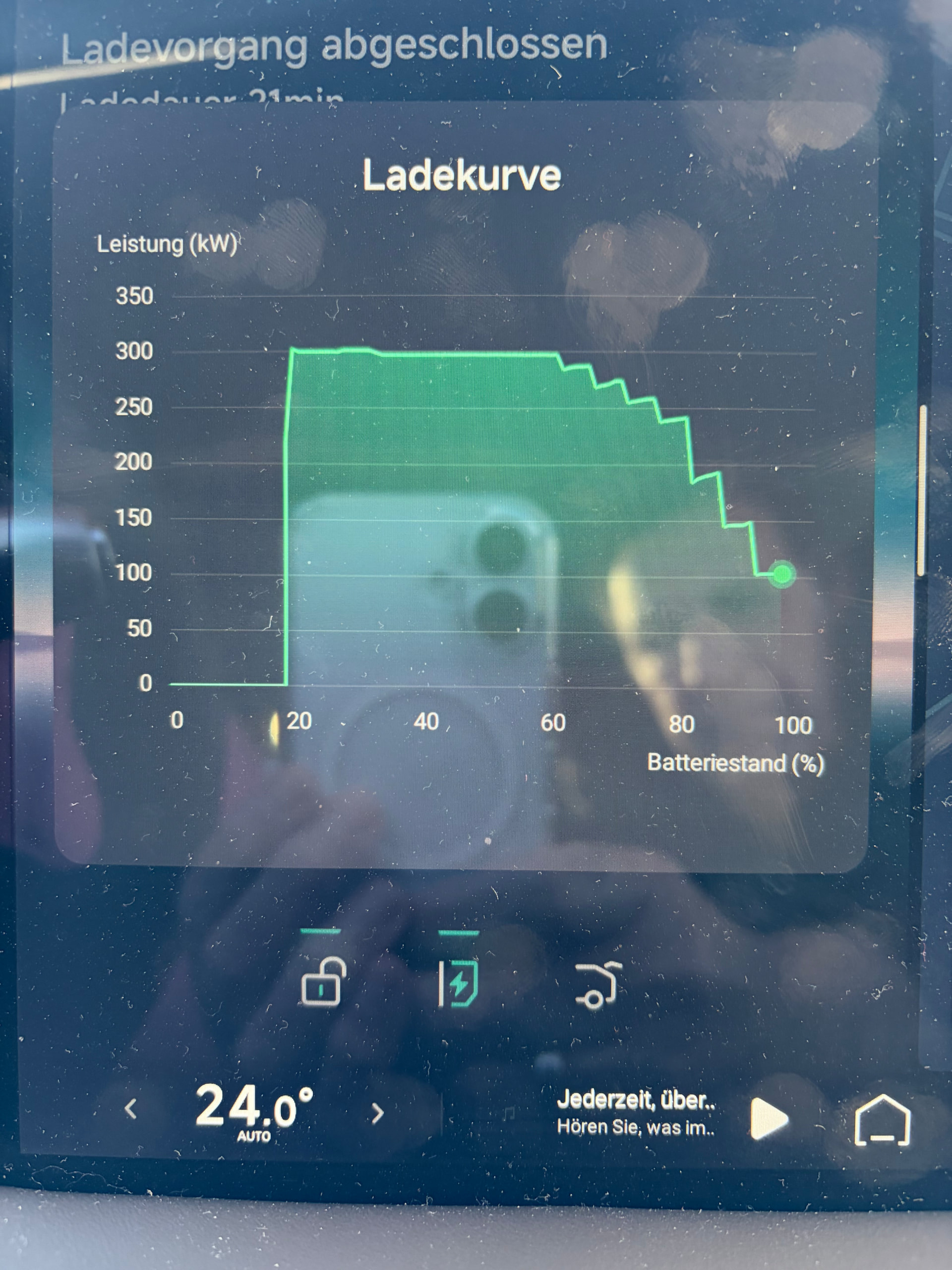 selbst die Geschwindigkeit beim vFL ist schon gewöhnungsbedürftig. Die “menschliche Pausenplanung” kommt auch beim NMC Akku schon ordentlich durcheinander, sodass sich eigentlich keiner mehr weit vom Fahrzeug entfernen darf.