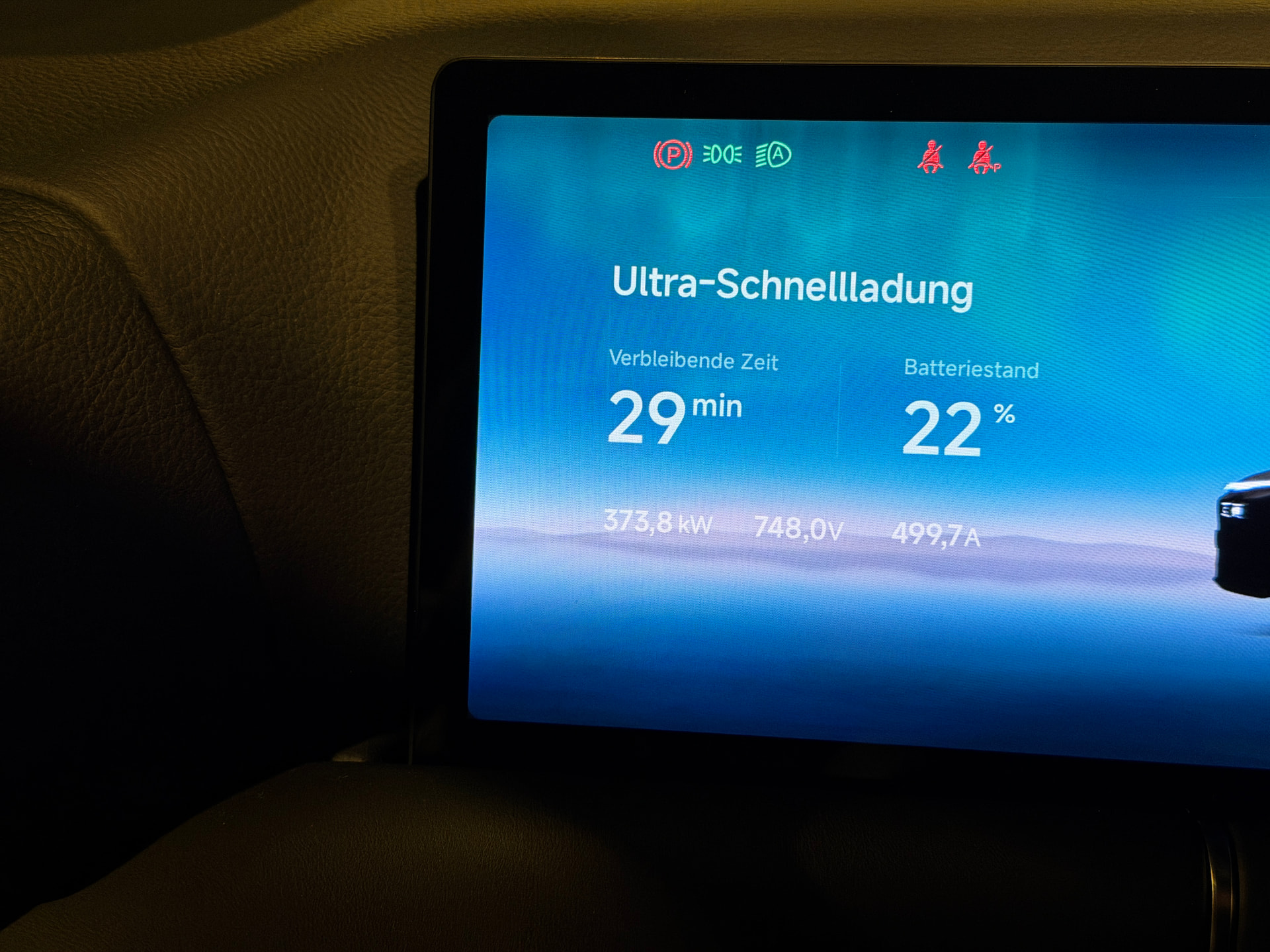 Maximal ~290 kW klingt nach harten Limit bei 400 Ampere, wenn der G9 irgendwo bei 720-730 Volt Akkuspannung hängt. Dann “darf” an der Ladesäule trotzdem 400 kW dranstehen, wenn sie bis 1000 Volt Spannung liefern kann. In solchen Situationen daher gerne Spannung und Ampere kontrollieren, dann wird das ganze besser nachvollziehbar. Die XPengs brauchen viel Ampere, und das liefern längst nicht alle Säulen. Selbst mit 500 Ampere kommt man mit 730 Volt Spannung nur auf 365 kW Ladeleistung. Und irgendwo bei 760 (?) Volt hört der G9 auf, oder? Wären dann maximal 380 kW, allerdings steigt die Spannung ja mit Ladestand, und gleichzeitig wird allgemein mit zunehmendem Ladestand die Ladeleistung gedrosselt, irgendwo ab 60% wird sowieso auf unter 300 kW gedrosselt, dann hilft auch die weiter ansteigende Spannung nicht mehr.