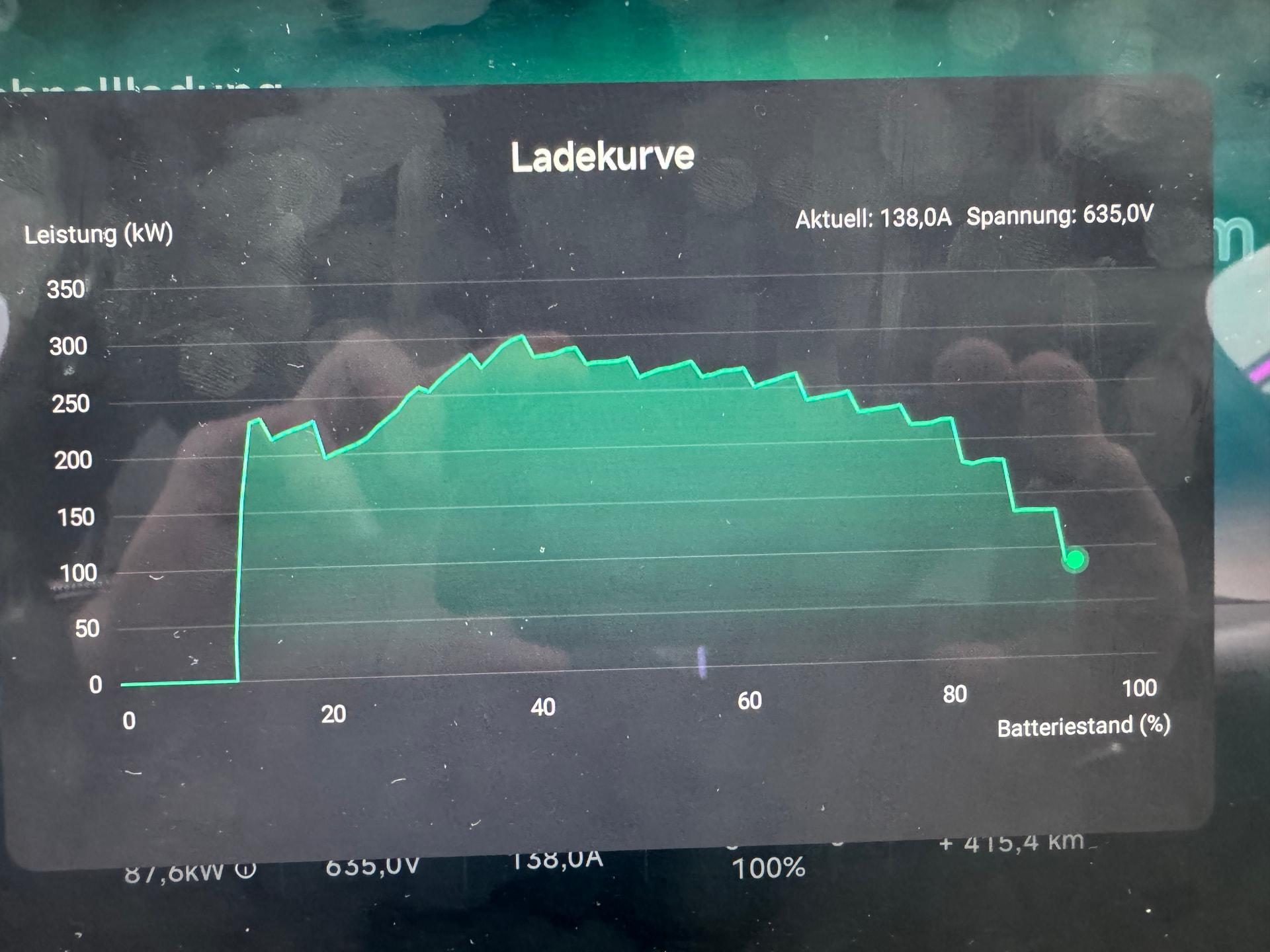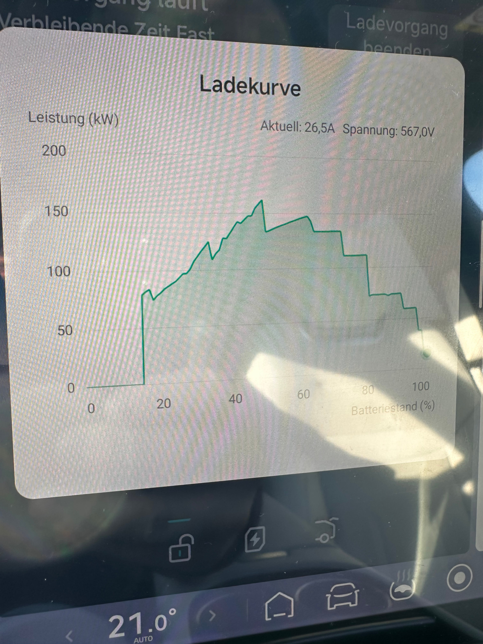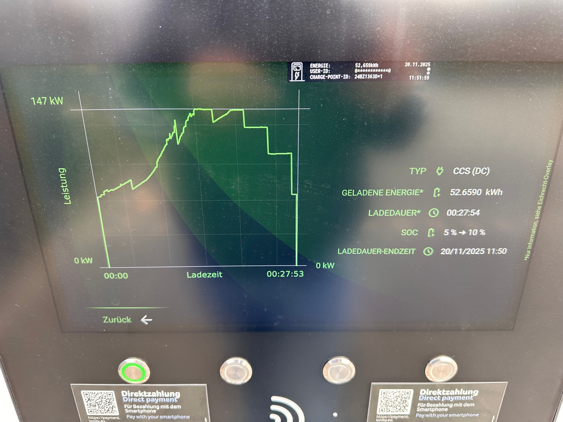 In der Spitze, der zu kurzen Anfahrt/Vorkonditionierung geschuldet, sah ich demnach auch nur 147kW.