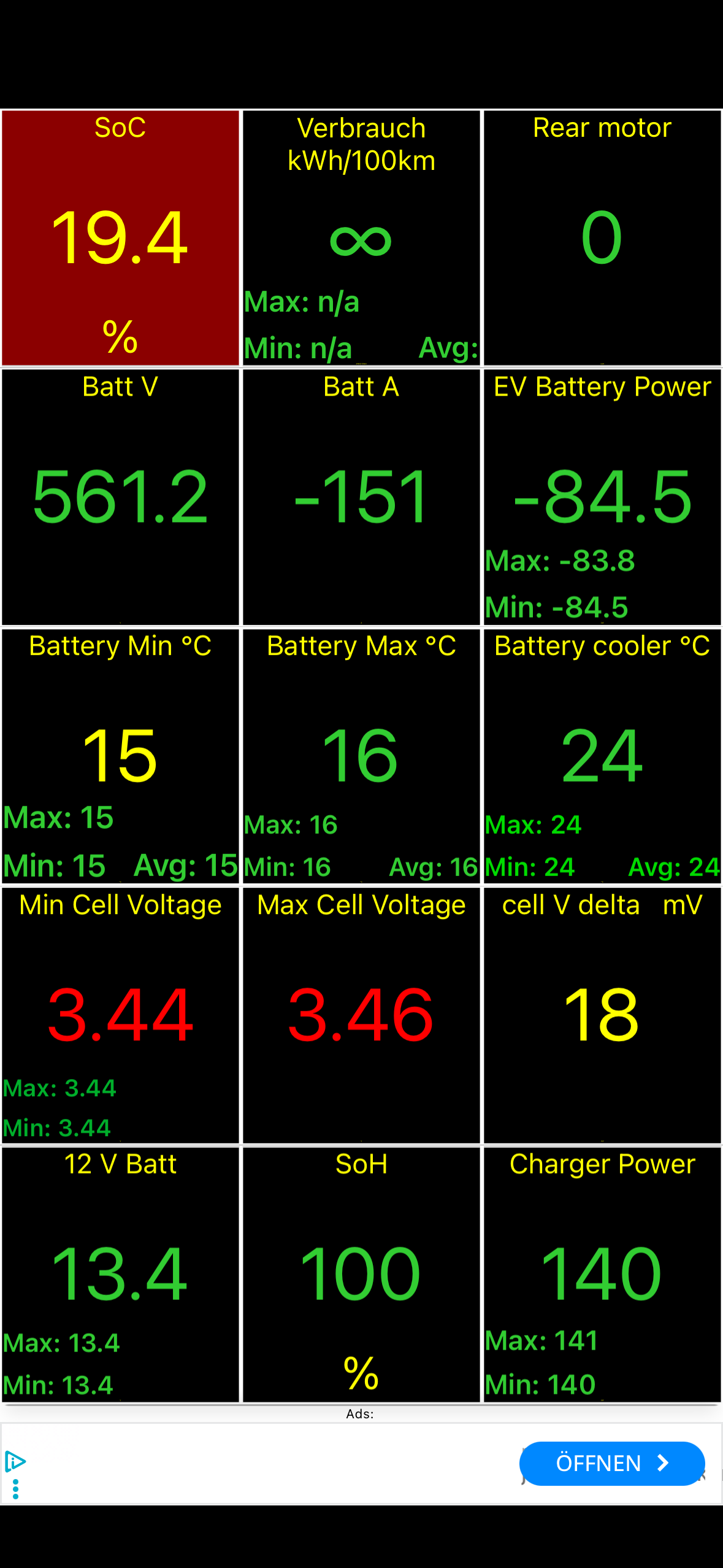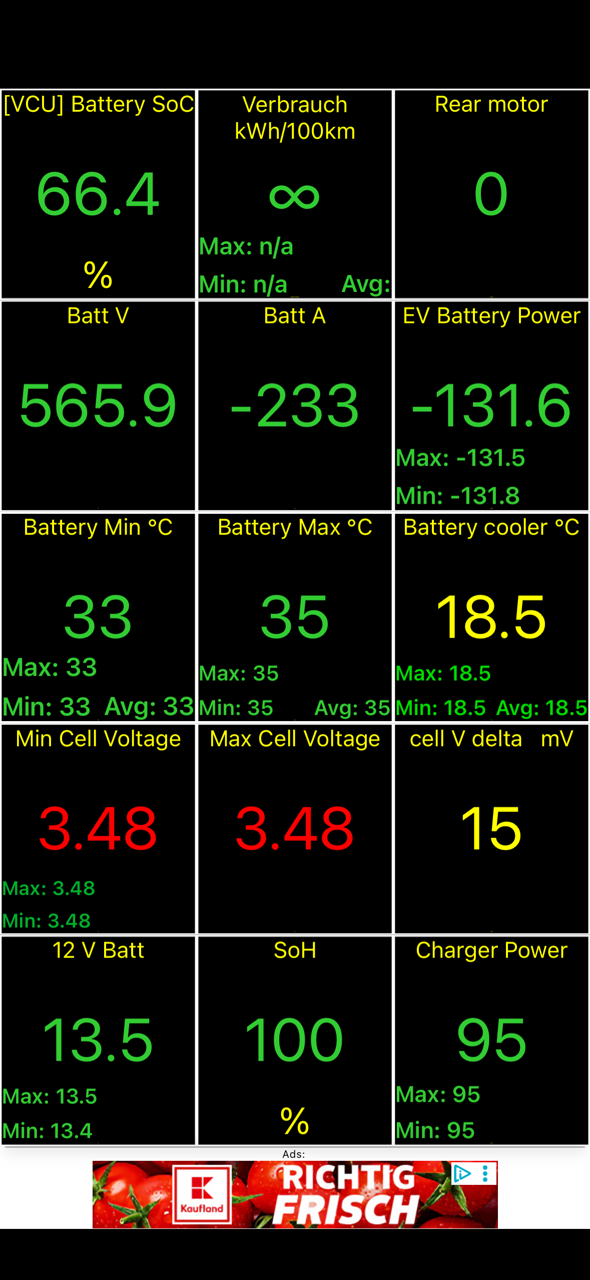 Die HV-Batterie war durchgefroren als ich mit 15% von der Arbeit vorhin 13km zu Ionity fuhr.
