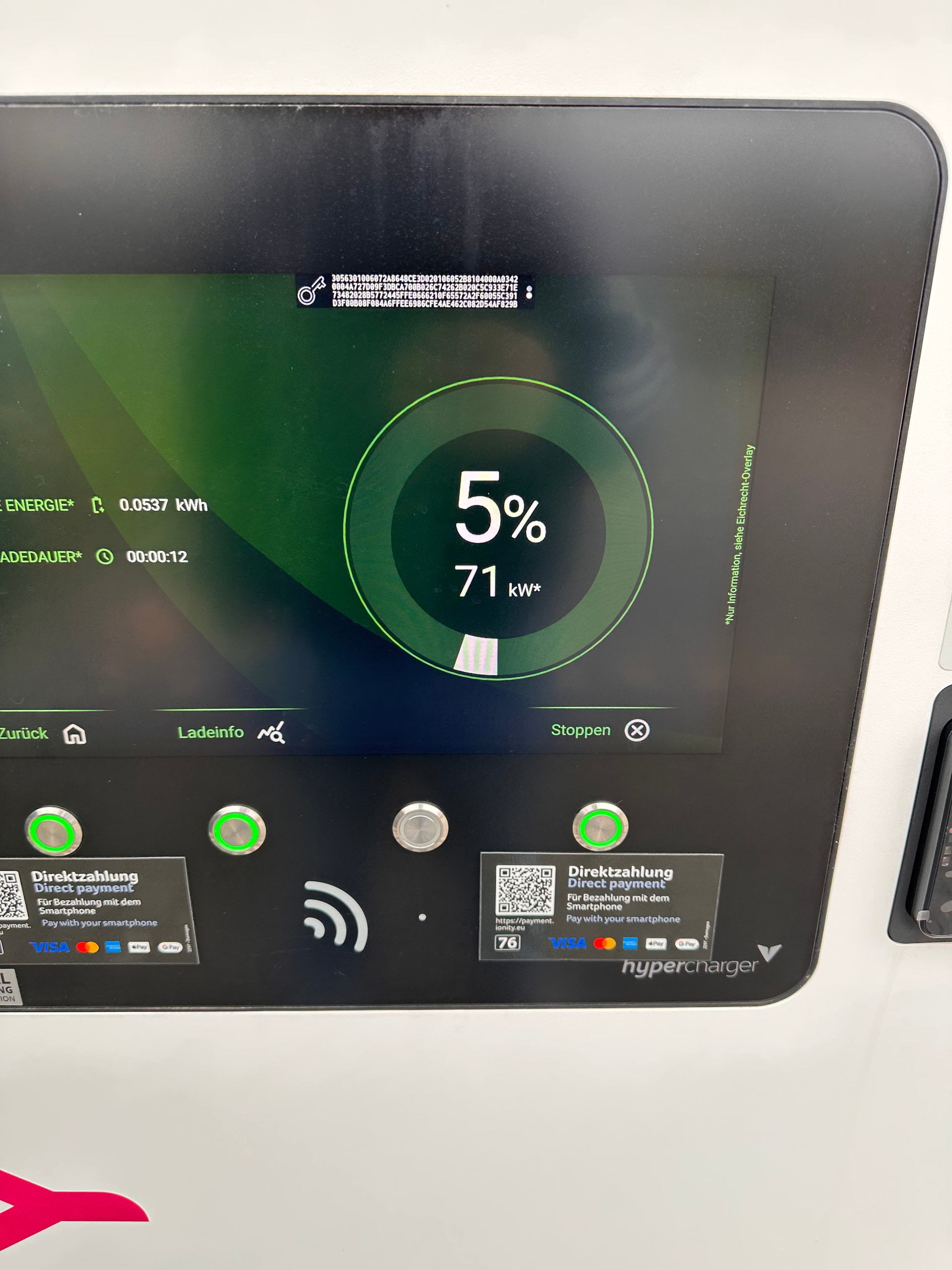 Ich war heute außerplanmäßig am Ionity Schnelllader, laut App 400kW, laut Beschriftung an der Säule 200kW. Aber das soll egal sein.
