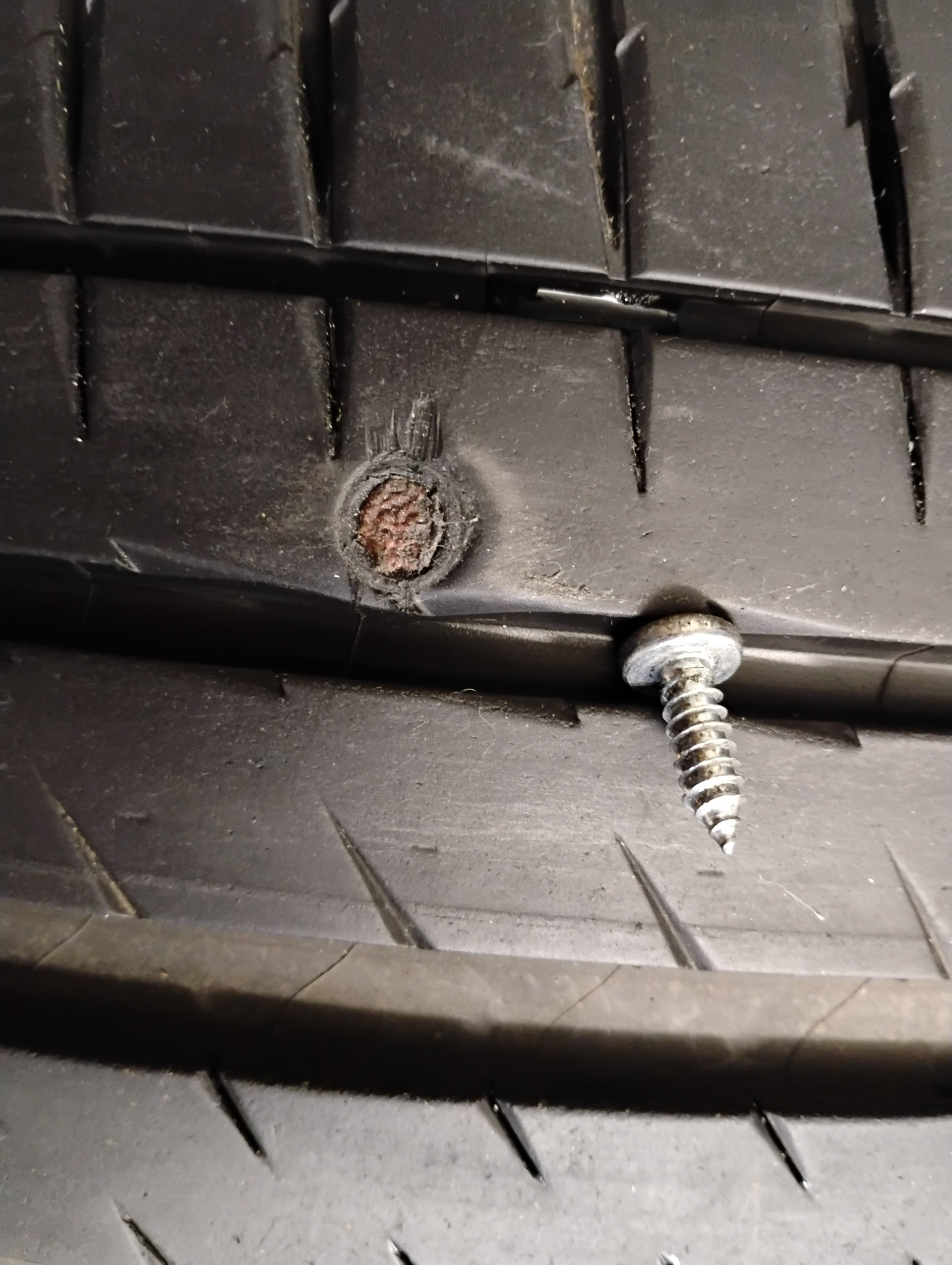 Habe zu Hause gesehen , dass eine Schraube im Reifen steckte !