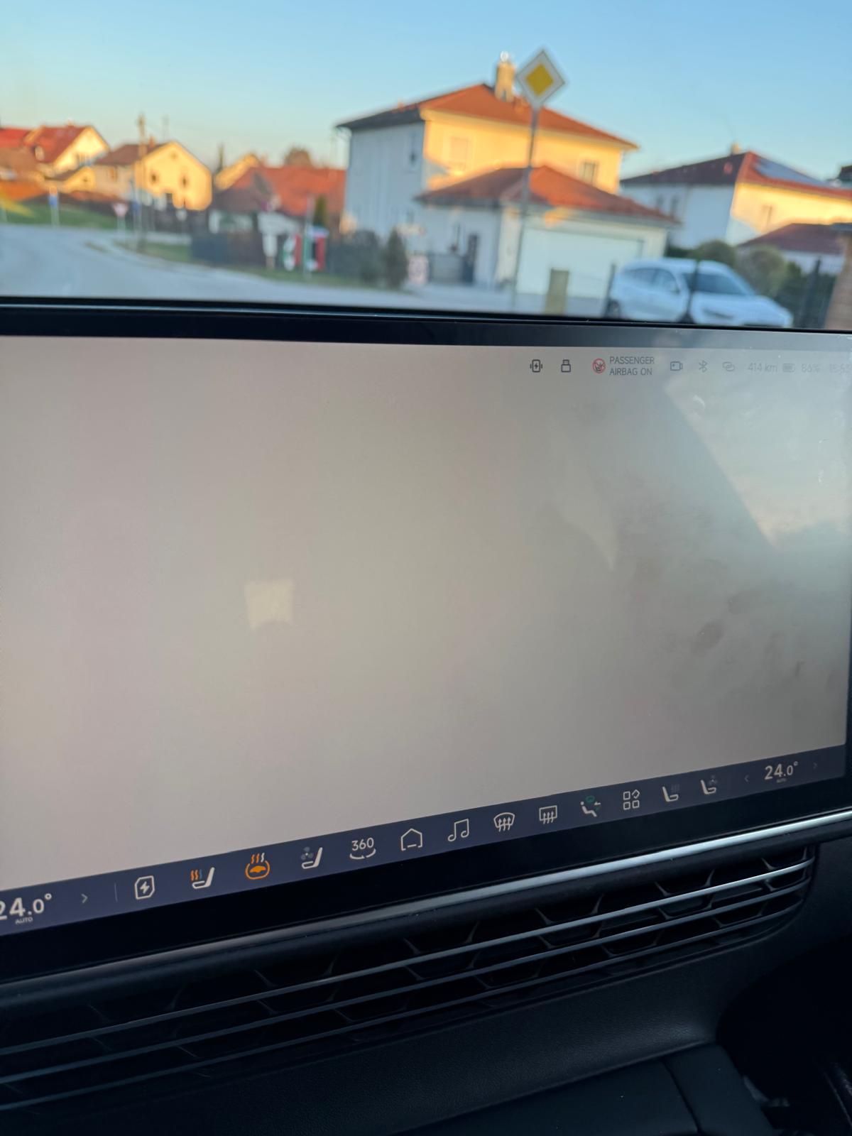 Der bekannte Fehler war leider wieder da. Die Displays waren erneut schwarz, die Assistenzsysteme sind ausgefallen und während der Fahrt sind die Bildschirme einfach eingefroren. Teilweise war das Display sogar komplett weiß. Ich habe ein paar Bilder gemacht, weil es mittlerweile fast wirkt, als würde das Auto jeden Tag eine neue Farbe ausprobieren.