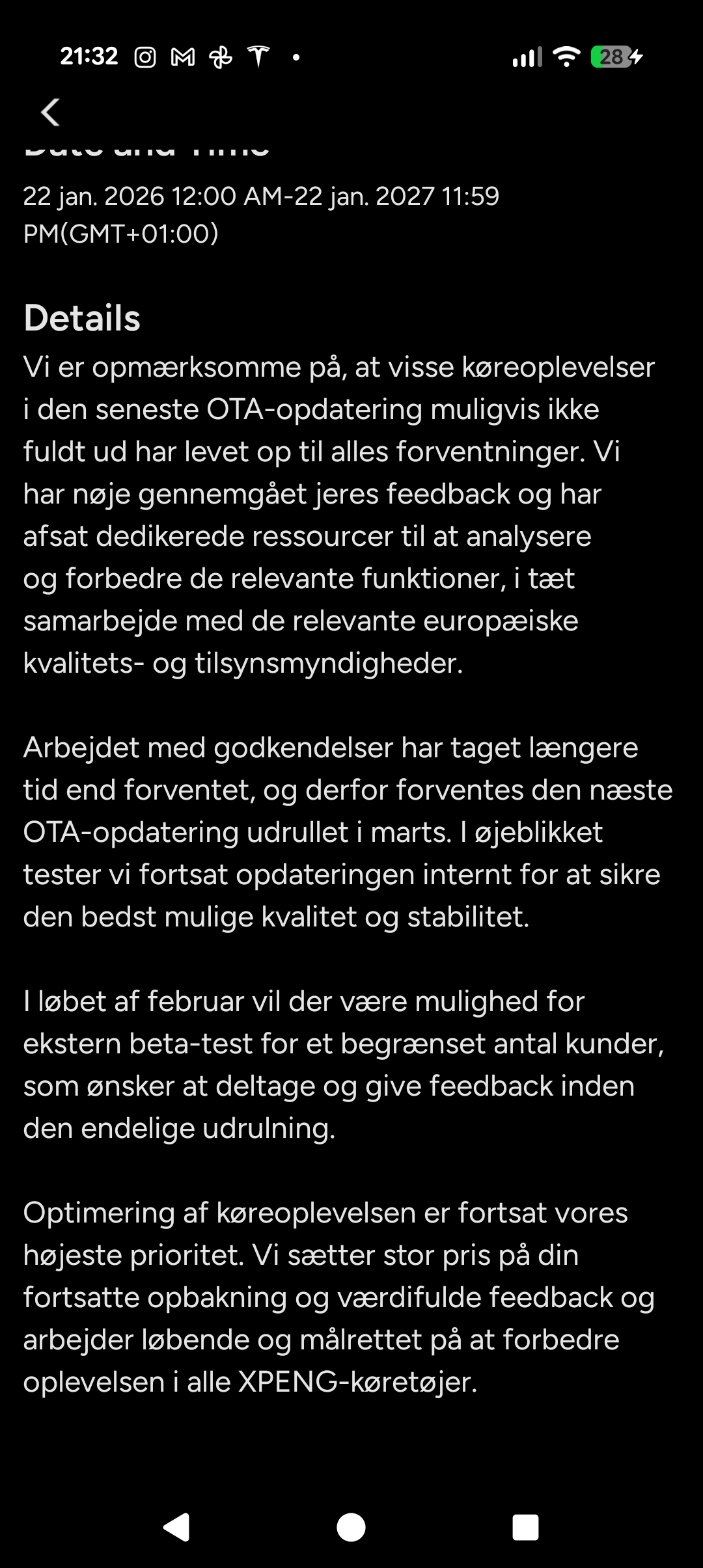 Die Optimierung des Fahrerlebnisses hat für uns weiterhin höchste Priorität. Wir schätzen Ihre anhaltende Unterstützung und Ihr wertvolles Feedback sehr und arbeiten kontinuierlich und zielgerichtet daran, das Erlebnis in allen XPENG-Fahrzeugen zu verbessern.”