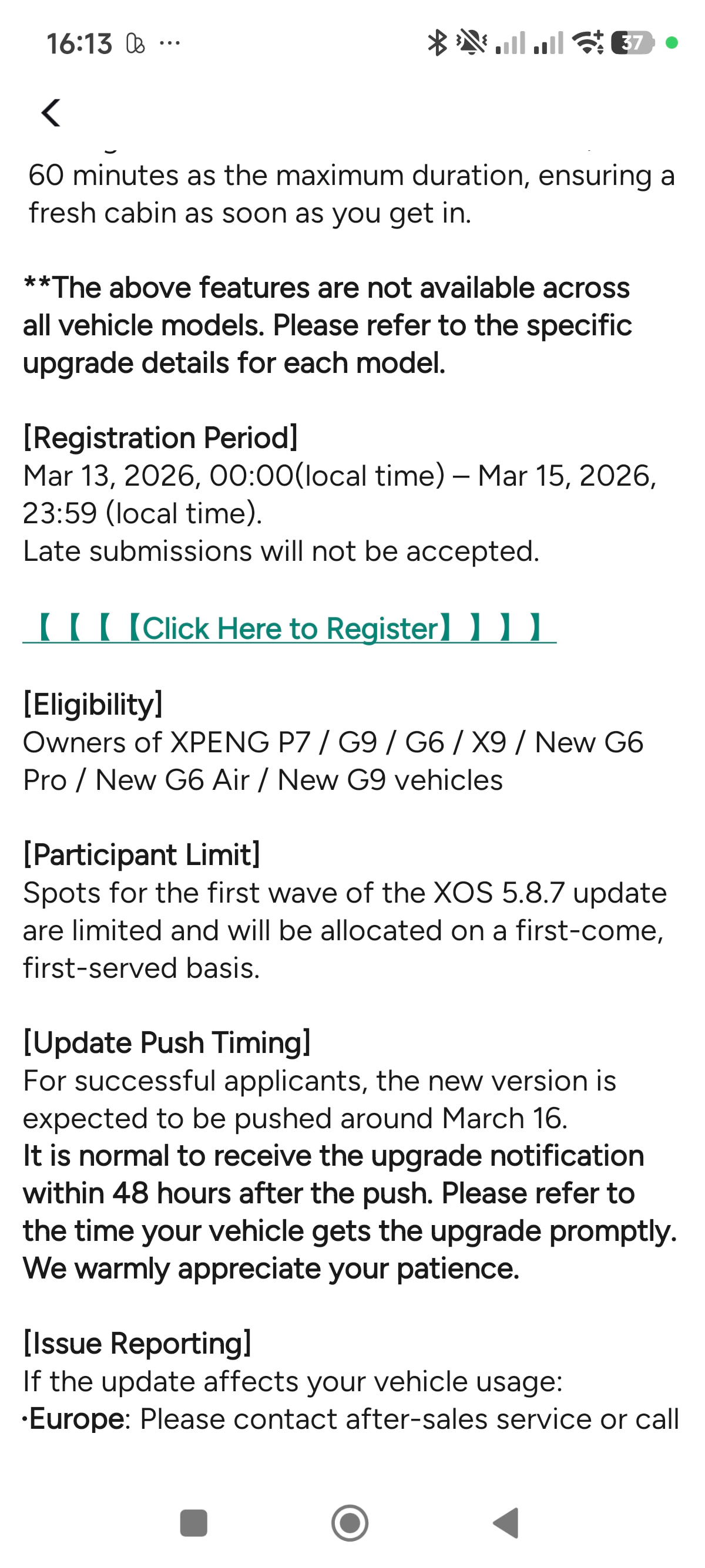 Ist eigentlich nur ein Test der finalen Version, bevor diese alle bekommen. Xpeng will halt mehr Feedback haben.