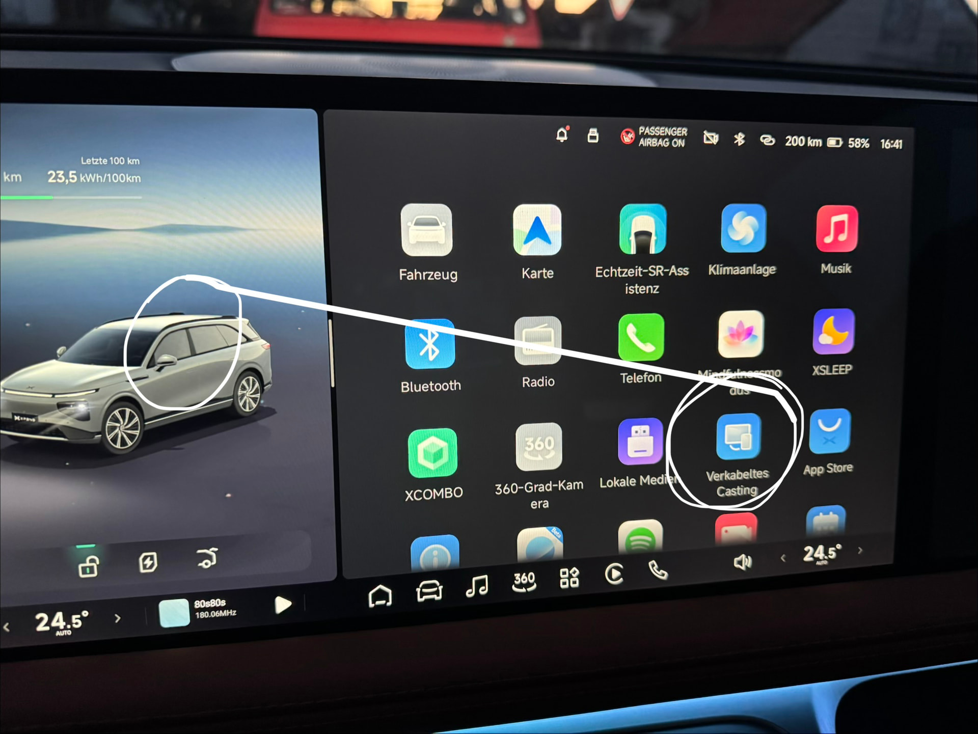 Hallo; vielen Dank für die Hilfestellung aber ich kenne alle diese Videos betreffend XPeng G9 …hier benutzt er ein Waipu TV Stick…der auf dem Beifahrerbildschirm funktioniert, jedoch AMAZON Firestick funktioniert definitiv nicht. Der AMAZON Stick funktioniert nur am Bildschirm (mittig) und das nur mit der MINIX (Wired CP to HDMI IN Adapter). Ich möchte es aber unbedingt am Beifahrer Bildschirm laufen haben da es sonst nix bringt. Der Hauptbildschirm wäre somit belegt und einfach nicht nutzbar wie gewöhnlich.