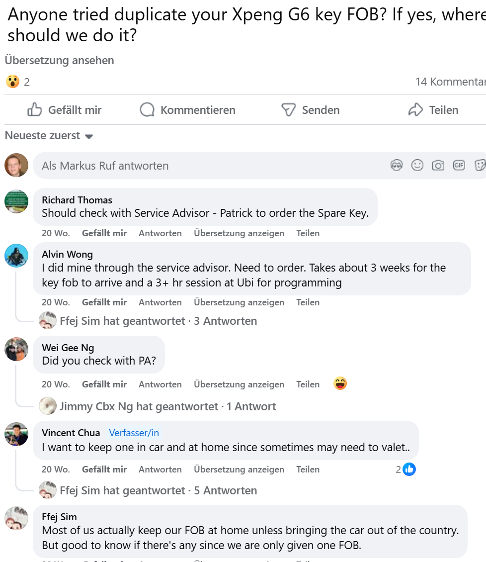 Das Feedback vom Autohaus. Es ist kein zweiter Schlüssel möglich. Xpeng arbeitet an einer Lösung. Da bin ich gerade etwas schockiert.