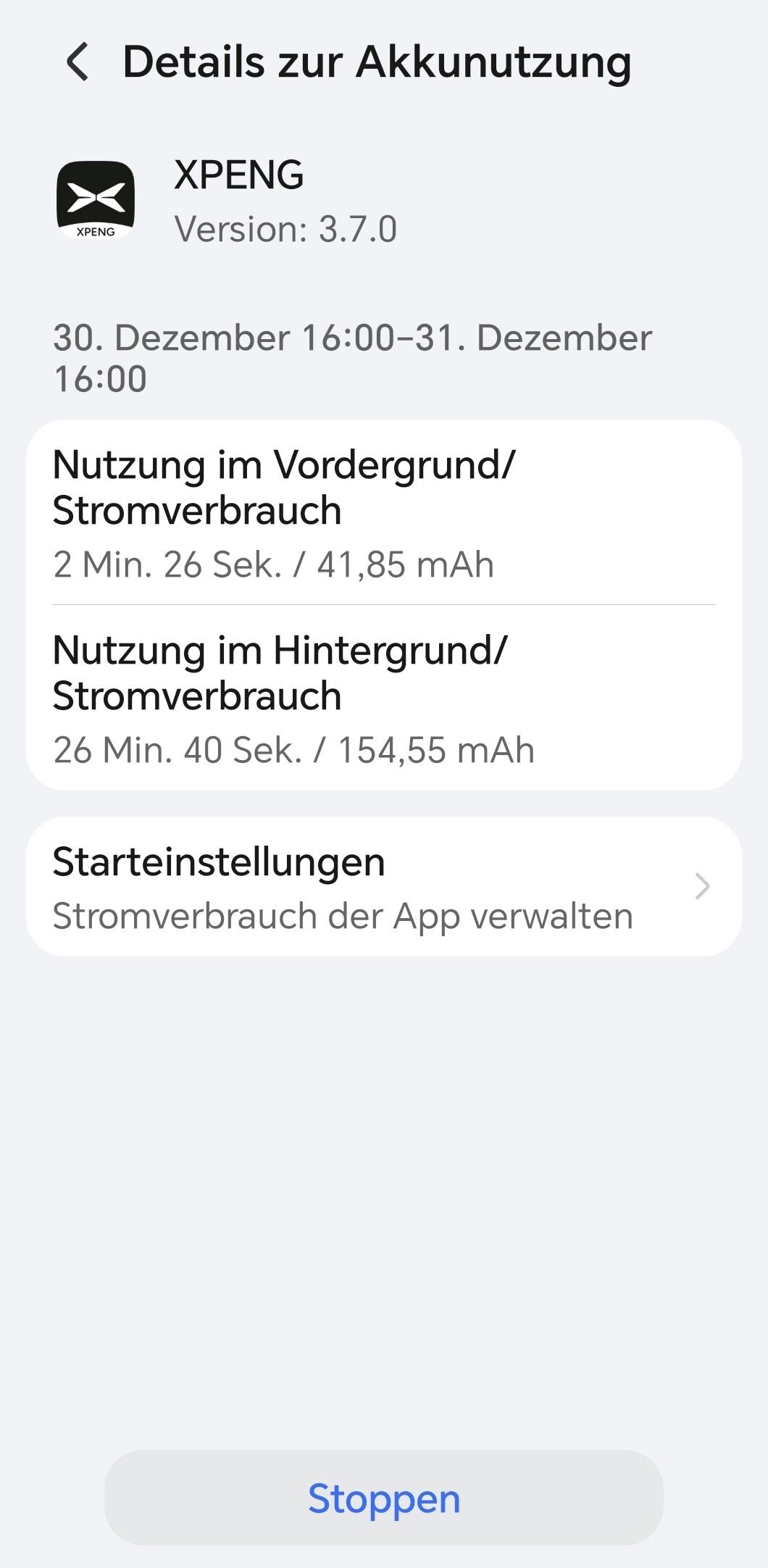 Ich habe das Auto ja noch gar nicht, habe aber gestern schon mal die App (Android 15) installiert und einen Accout angelegt. Und ja der Verbrauch ist schon enorm, 17% in 8 Minuten.