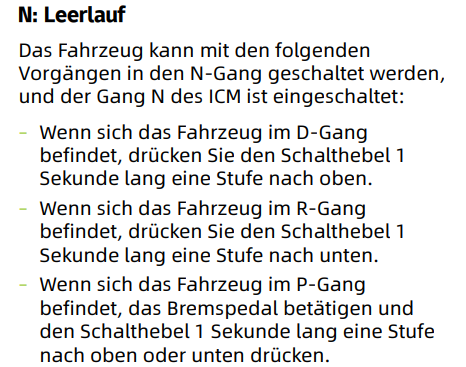 Bremse treten und den Lenkstockhebel leicht nach oben drücken und kurz halten. Dann geht N