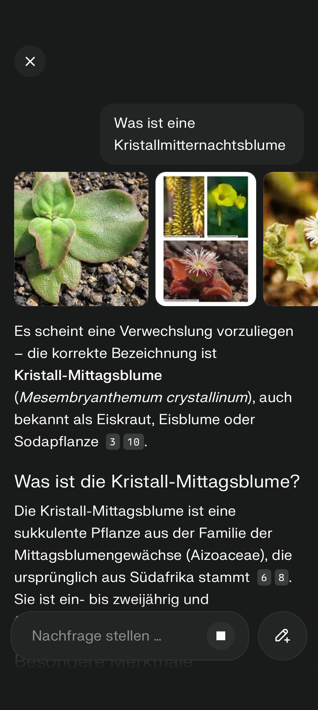 Ich dachte halt sie heißt Kristallmitternachtsblume. Die Verwechslung hätte eine KI sofort merken müssen. Aber 4 KIs haben es nicht gemerkt.
