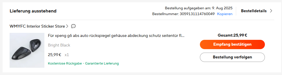 Ich habe Spiegelkappen von Ali genommen.