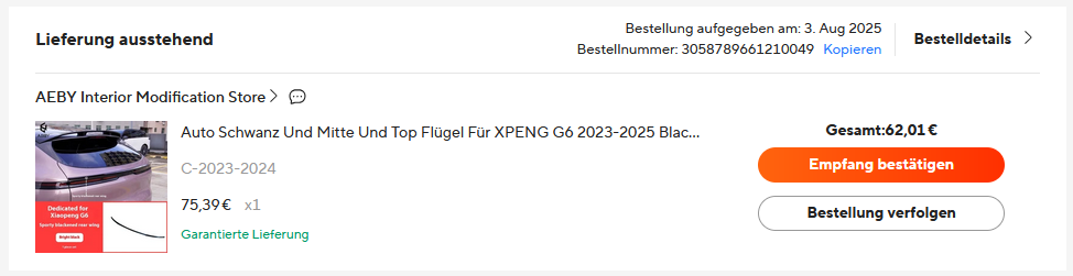 Außerdem habe ich mal den kleinen Heckspoiler bestellt: